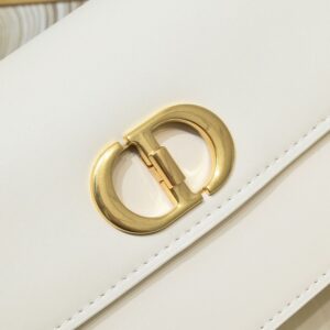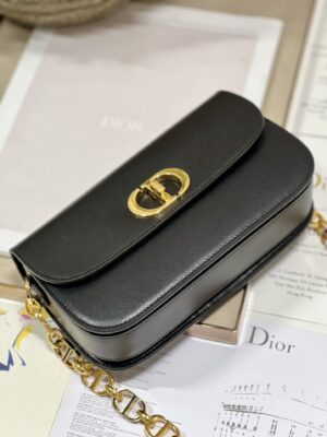 The 30 Montaigne Avenue bag enhances the hallmark line with a timeless and elegant style. Crafted in box , the rounded flap with delicate curves is punctuated by an antique gold-finish metal CD clasp inspired by the seal of a Christian Dior perfume bottle. The design is completed by other details, like the 30 Montaigne signature embossed on the back and the signature chain alternating gold-finish metal and tonal enamel links that match . The gusseted bag features a spacious and refined silhouette that can be carried by hand, worn over the shoulder or crossbody.