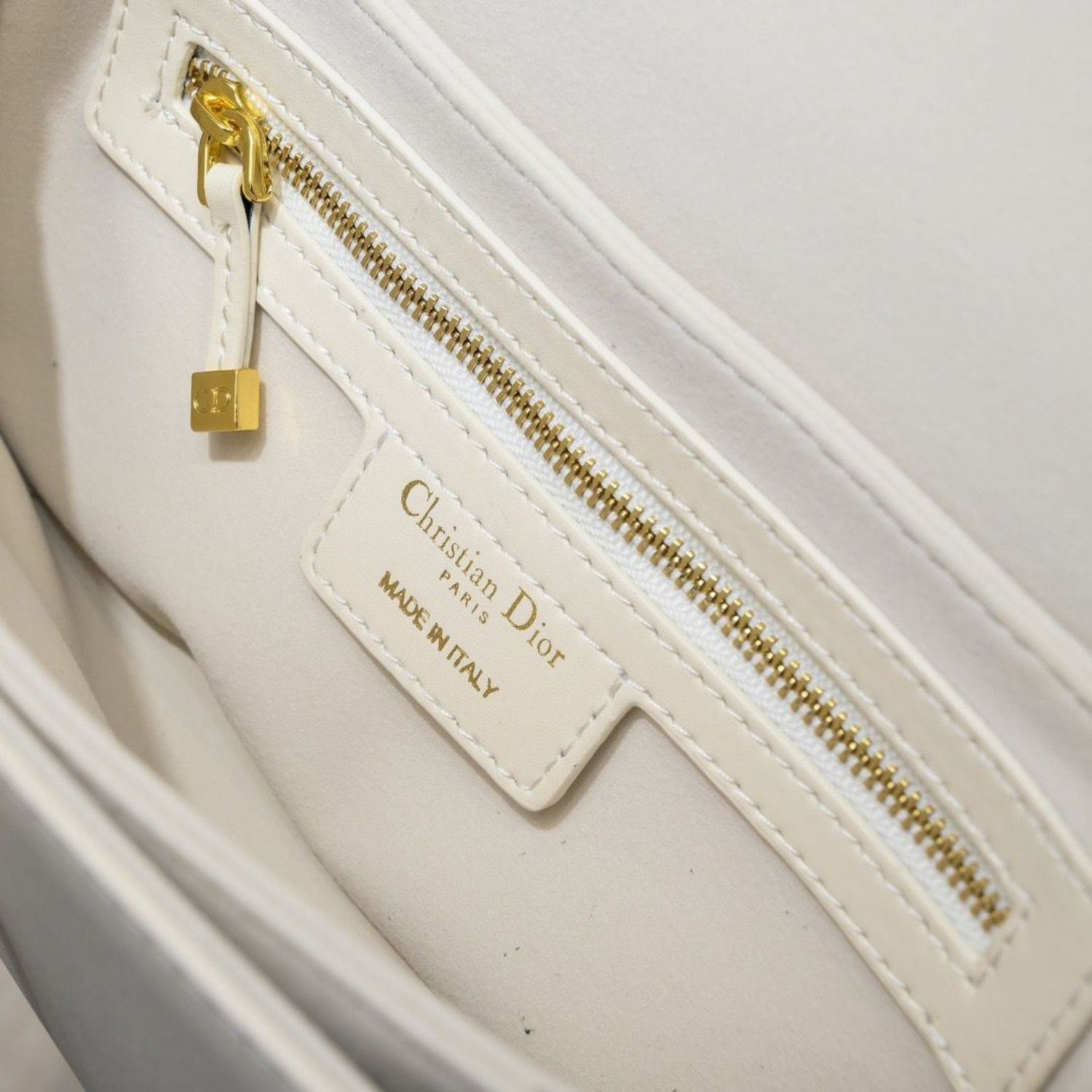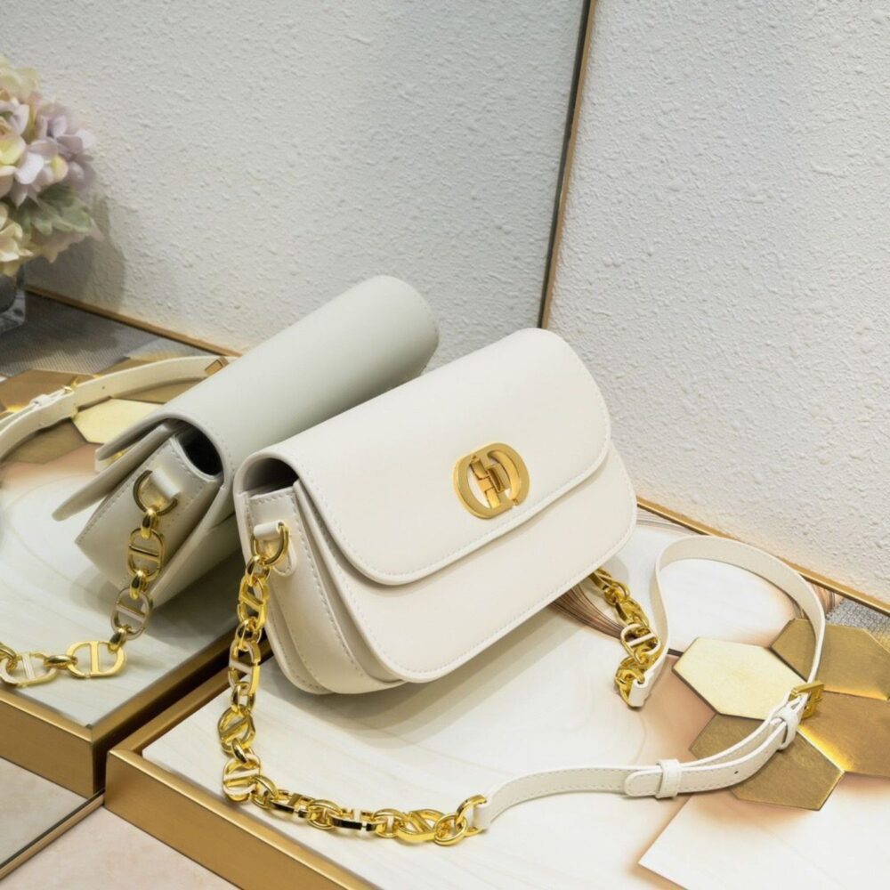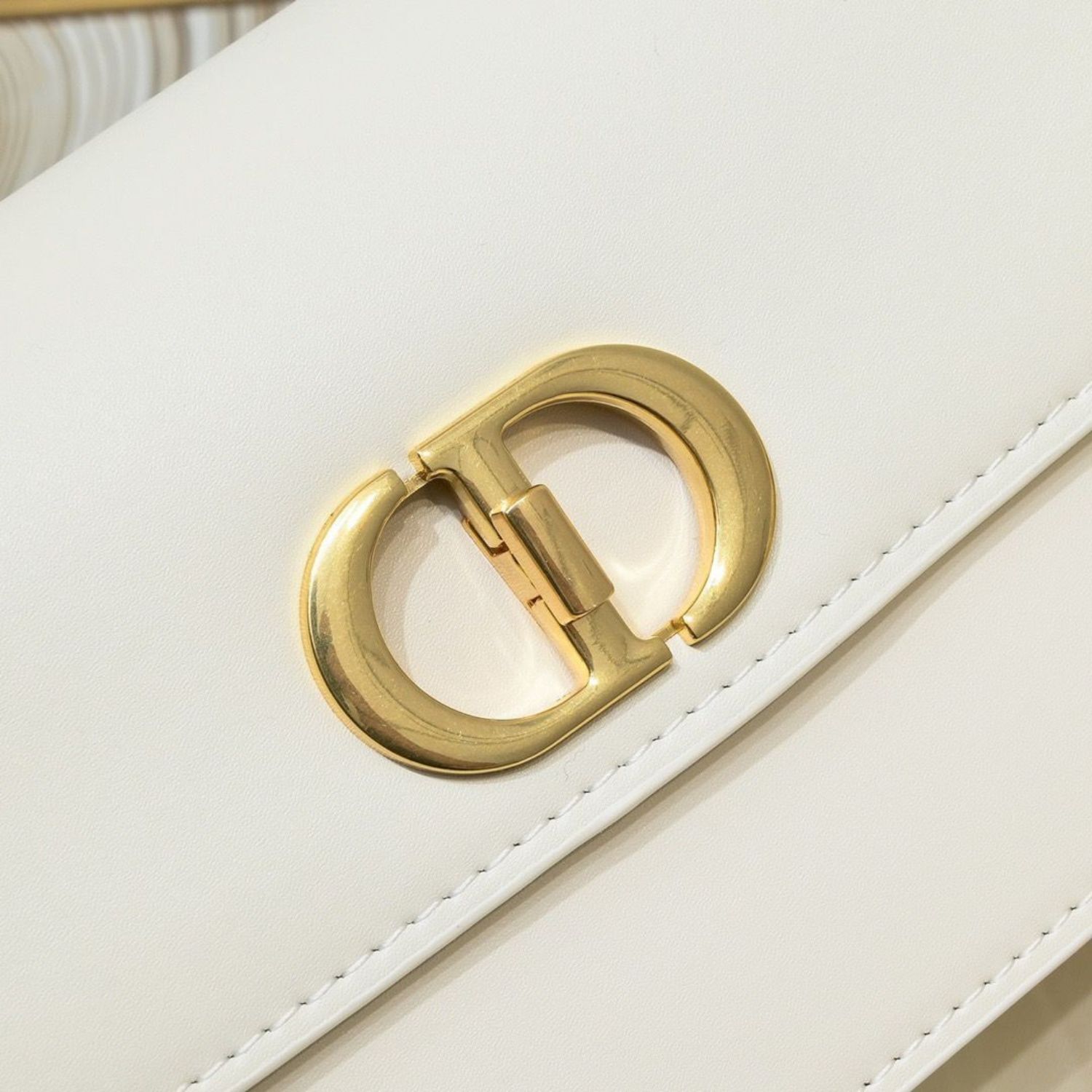 The 30 Montaigne Avenue bag enhances the hallmark line with a timeless and elegant style. Crafted in box , the rounded flap with delicate curves is punctuated by an antique gold-finish metal CD clasp inspired by the seal of a Christian Dior perfume bottle. The design is completed by other details, like the 30 Montaigne signature embossed on the back and the signature chain alternating gold-finish metal and tonal enamel links that match . The gusseted bag features a spacious and refined silhouette that can be carried by hand, worn over the shoulder or crossbody.