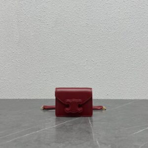 Celine Card Holder On Chain Triomphe Red For Women 4in/11cm 10J743DPV.27VD