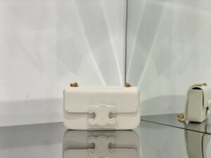 Celine Chain Shoulder Bag Cuir Triomphe White For Women 7.9in/20cm
