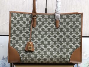 Celine Horizontal Cabas In Textile With Triomphe Embroidery Khaki For Women 17in/43cm 197002CS8.15KH