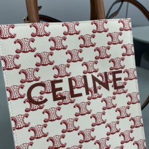 Celine Mini Vertical Cabas In Triomphe Canvas Red For Women 7.2in/18cm