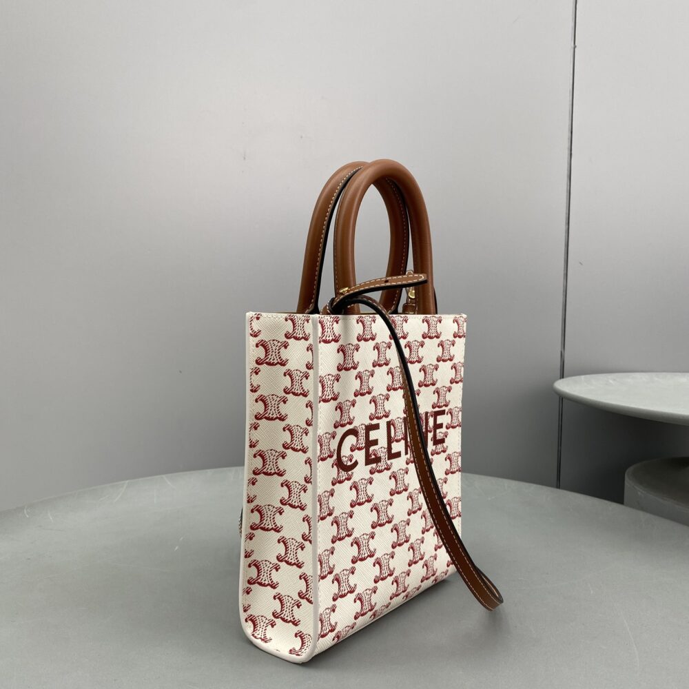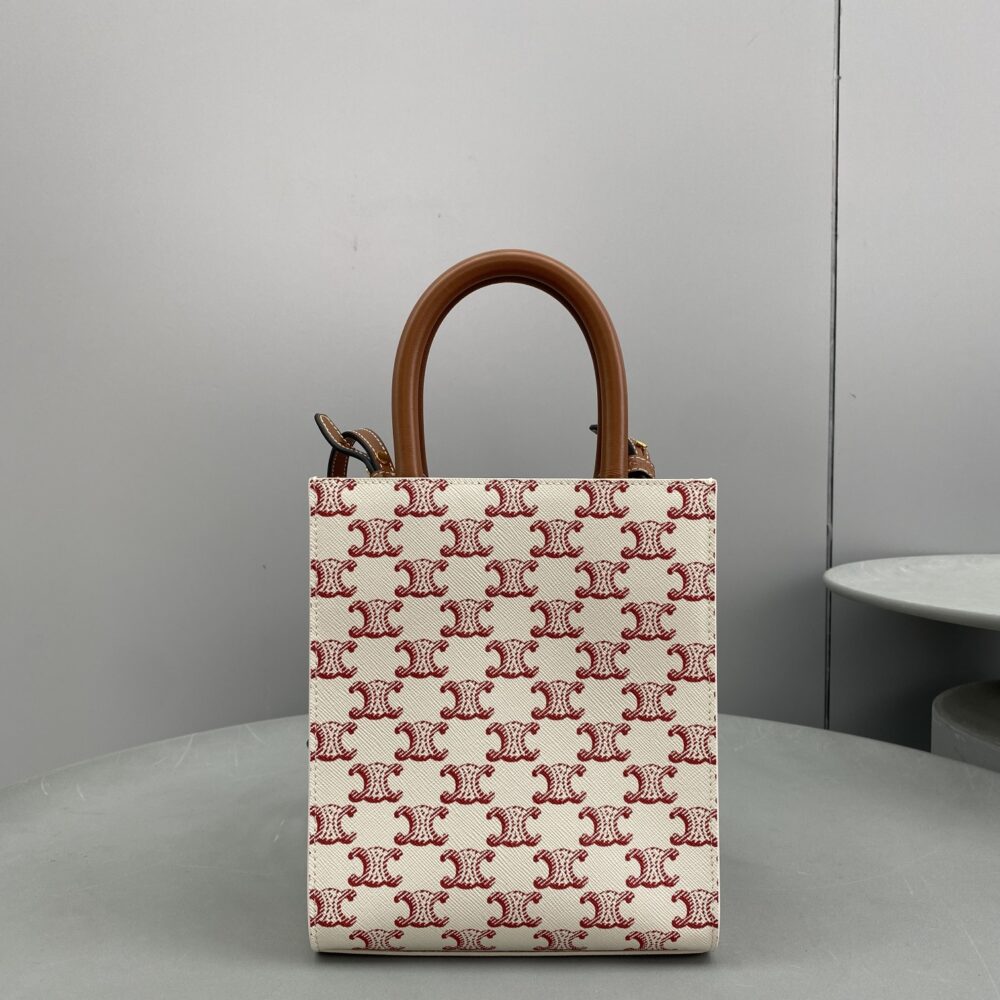 Celine Mini Vertical Cabas In Triomphe Canvas Red For Women 7.2in/18cm