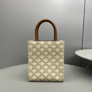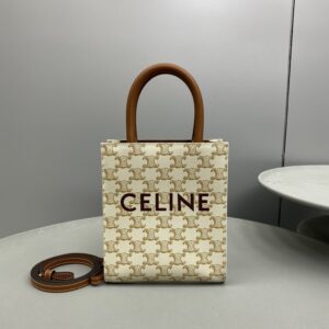 Celine Mini Vertical Cabas In Triomphe Canvas White For Women 7.2in/18cm 194372BZK.01BC