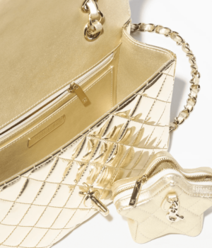 Metallic mirrored calfskin, metallic lambskin and gold-plated metal