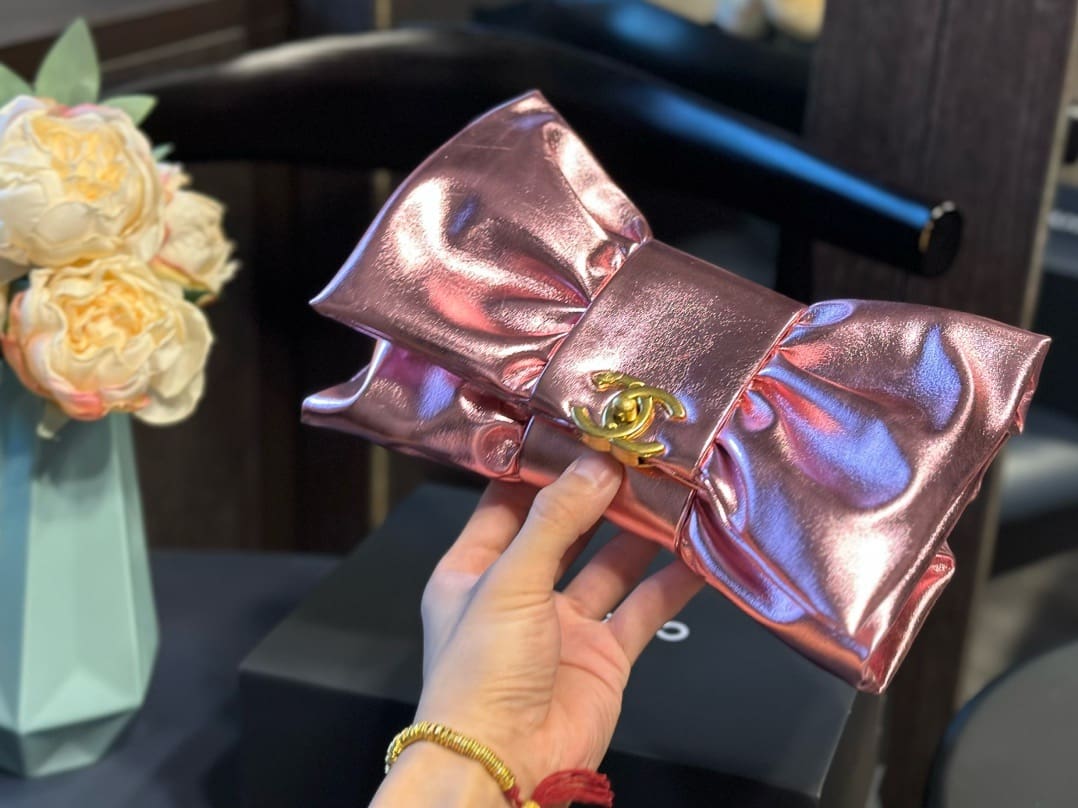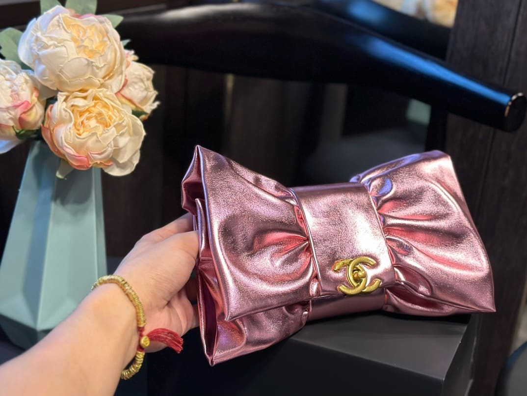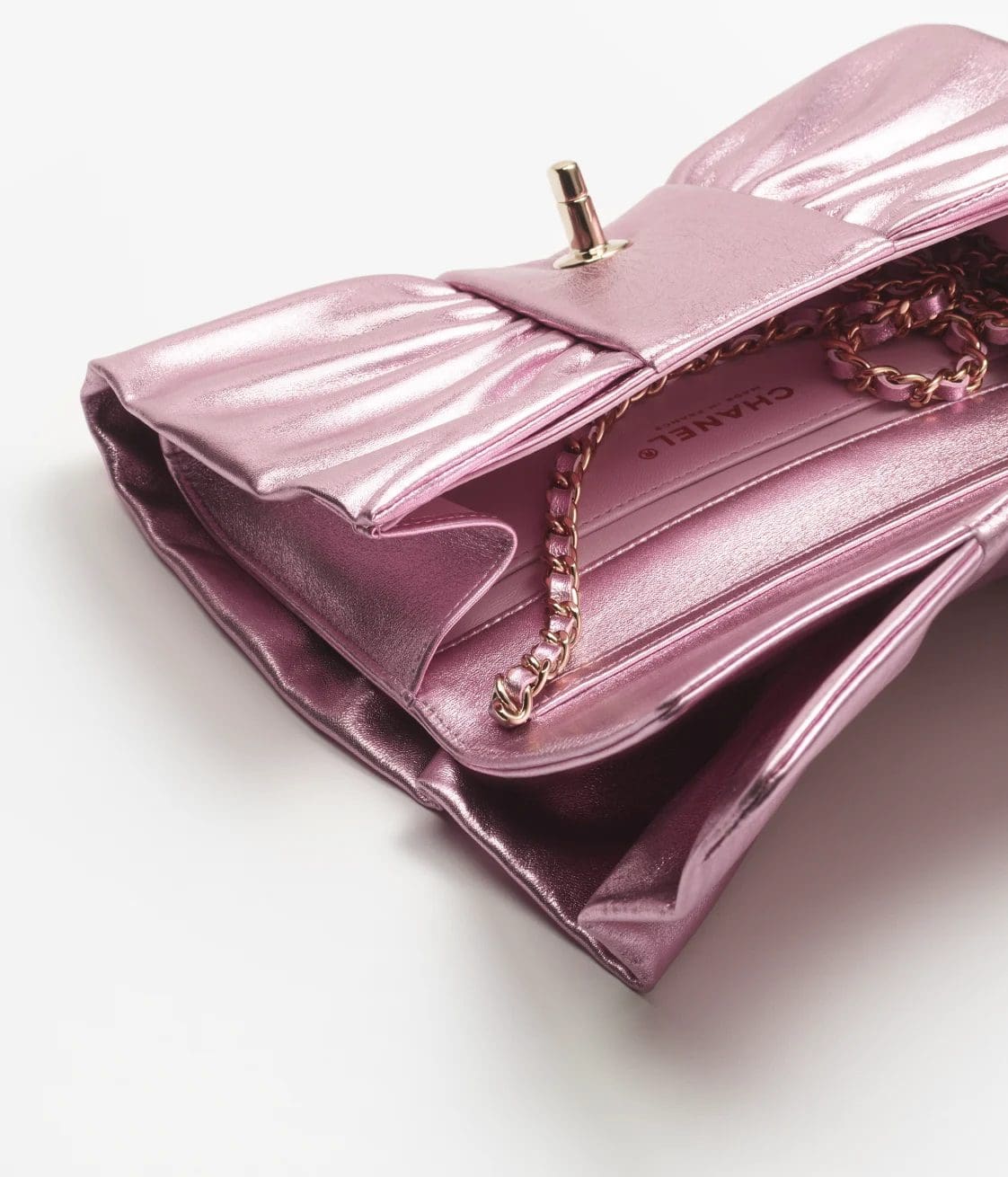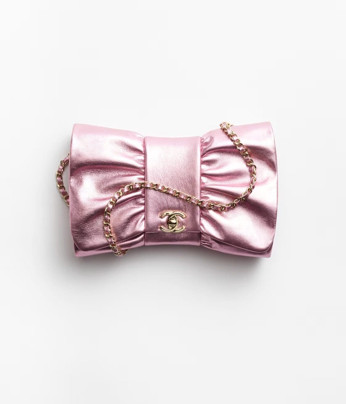 CHANEL Clutch Metallic Lambskin & Gold-Tone Metal Pink