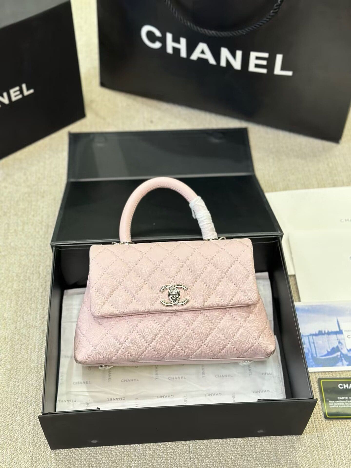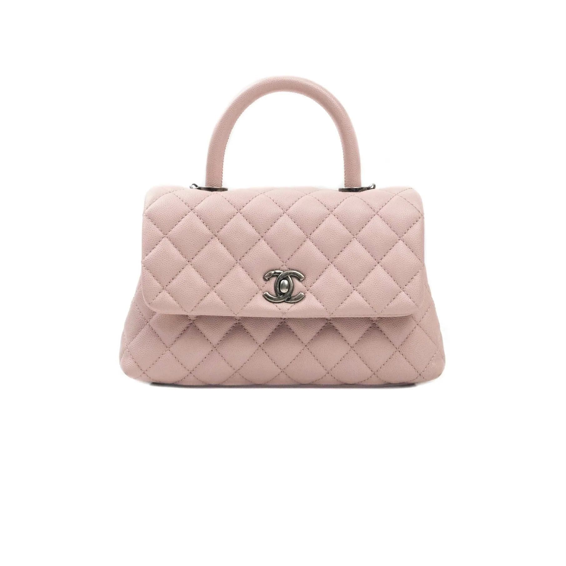 Chanel Mini (Small) Coco Handle Quilted Pink Caviar Ruthenium Hardware