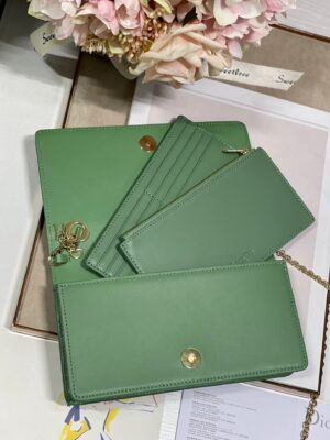 The Lady Dior pouchis distinguished by the emblematic Cannage topstitching and a detachable ‘D.I.O.R.’ charm. This unique accessory may be worn with or without its chain strap and features two removable elements: a card holder and a zipped pouch. Each may be carried individually. The pouch will instantly stand out and pairs well with other pieces from the same line.