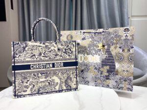 The Dior Book Tote has become a staple of the Dior aesthetic. Designed to hold all the daily essentials, a variation of the iconic pattern. Adorned with the ‘CHRISTIAN DIOR PARIS’ signature on the front, the large tote and may be carried by hand or worn over the shoulder.