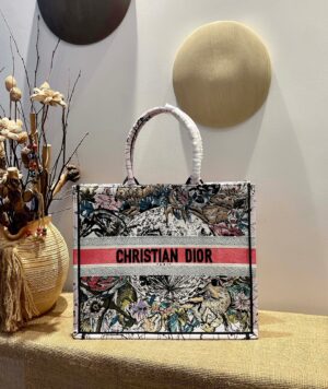 The Dior Book Tote has become a staple of the Dior aesthetic. Designed to hold all the daily essentials, a variation of the iconic pattern. Adorned with the ‘CHRISTIAN DIOR PARIS’ signature on the front, the large tote and may be carried by hand or worn over the shoulder.