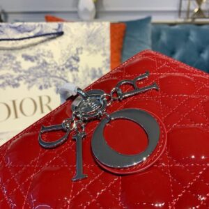 Christian Dior Large Lady Dior Bag Silver Hardware Cherry Red Patent For Women 12.5in/32cm CD