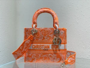 The Lady D-Lite Bag Combines Classic Elegance With House Modernity. The Front Features A ‘CHRISTIAN DIOR PARIS’ Signature While ‘D.I.O.R.’ Charms In Ruthenium-Finish Metal Enhance And Illuminate The Silhouette. Equipped With A Wide, The Medium Lady D-Lite Bag Can Be Carried By Hand Or Worn Crossbody.