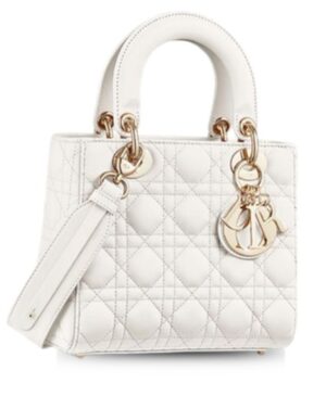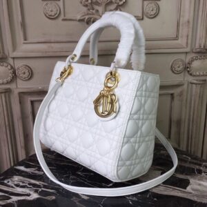 Christian Dior Medium Lady Dior Bag Gold Toned Hardware White For Women 24cm/9in CD