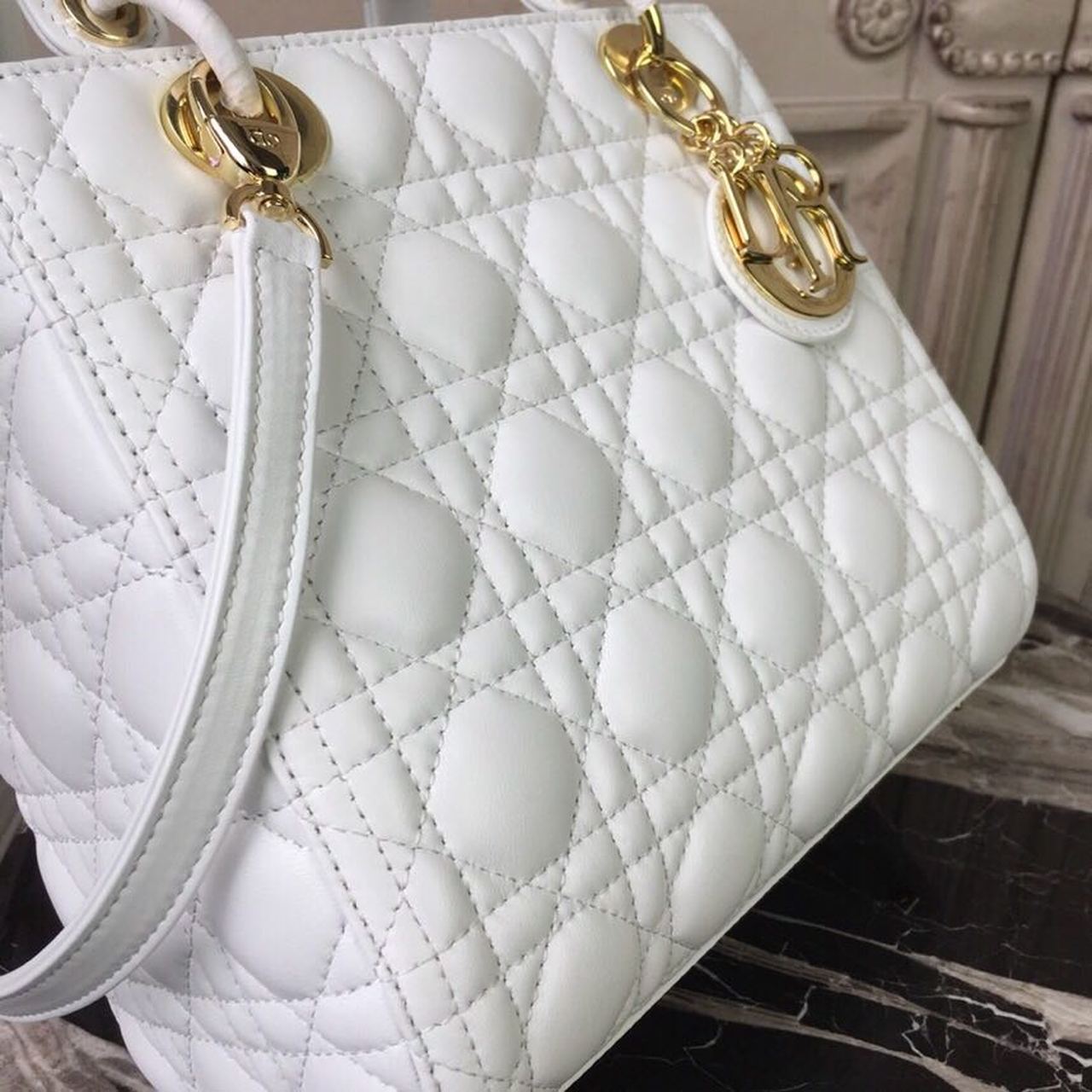 Christian Dior Medium Lady Dior Bag Gold Toned Hardware White For Women 24cm/9in CD