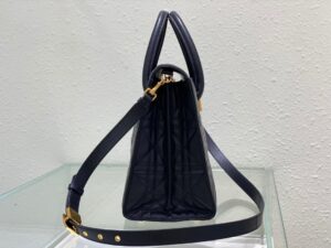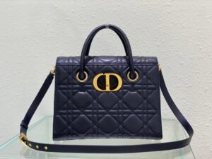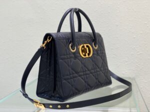 The 30 Montaigne line, inspired by the hallmark address, offers essential pieces that embody the House’s iconic codes. The miniature style has an adjustable shoulder strap and can be worn over the shoulder or crossbody.