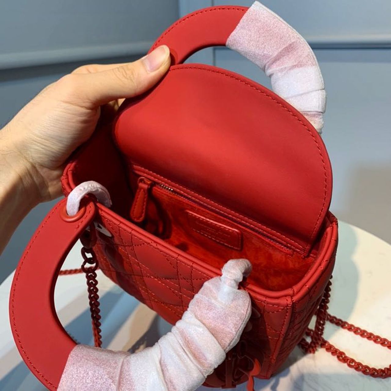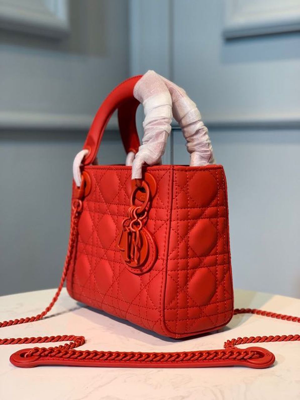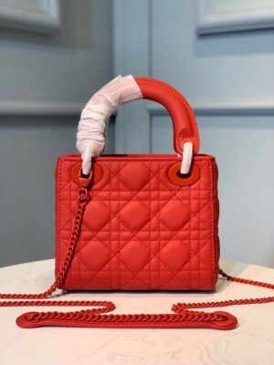 Christian Dior Mini Lady Dior Bag with Chain Matte Hardware Spring/Summer Collection, Red , For Women Women’s Handbags, 18cm CD