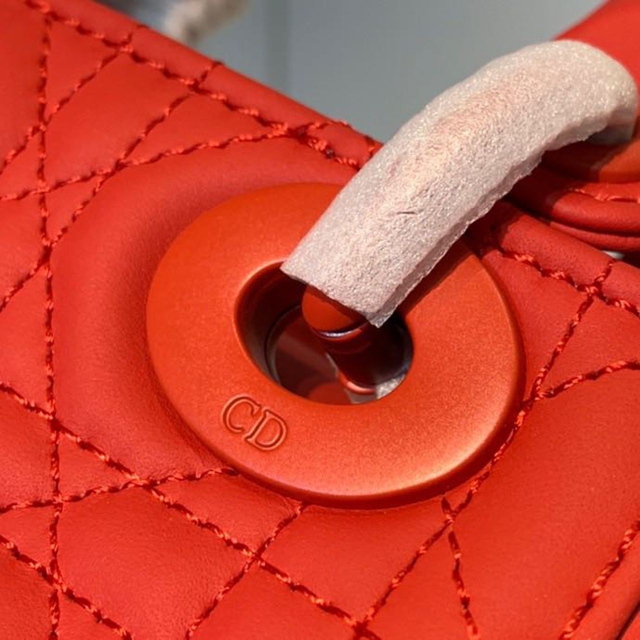 The Lady Dior handbag epitomizes the House’s vision of elegance and beauty. Refined and sleek, this creation is timeless. Covered with Cannage stitching, it boasts an instantly recognizable quilted texture. The pale matte-finish metal ‘D.I.O.R.’ charms embellish and illuminate its silhouette. Featuring a removable chain shoulder strap, the miniature Lady Dior bag can be carried by hand or worn crossbody as an ideal evening wear companion.