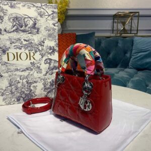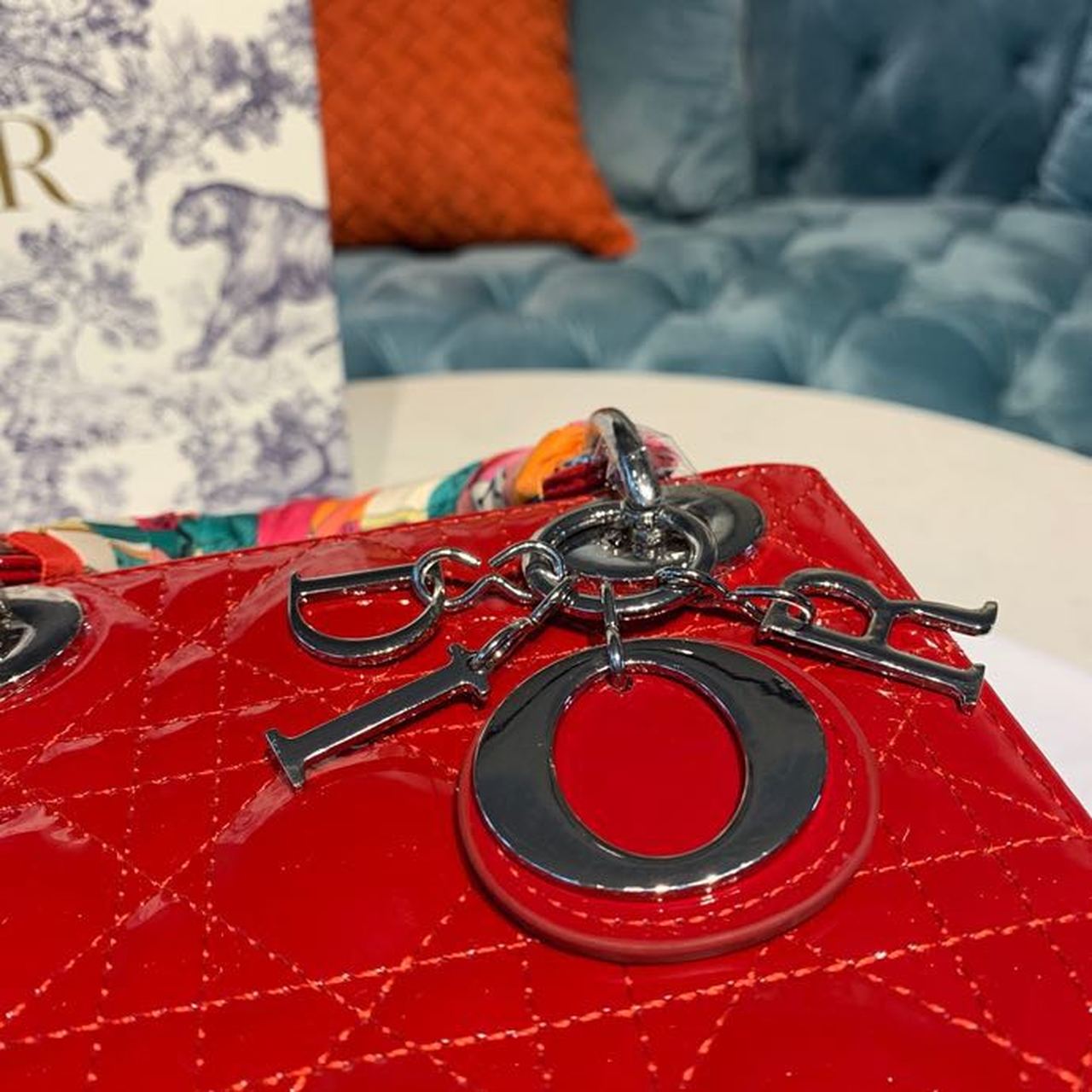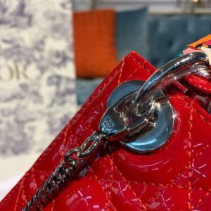 Christian Dior Mini Lady Dior Bag with Chain Silver Hardware Spring/Summer Collection, Red, For Women Women’s Handbags, 17cm CD M0505OCAL_M52R