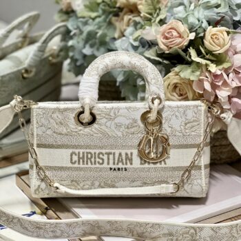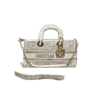 The iconic Saddle bag, crafted in white , is reimagined by Maria Grazia Chiuri. The legendary design is embellished with a Dior Oblique perforations motif and features a Saddle flap with a magnetic ‘D’ stirrup clasp and an antique gold-finish metal ‘CD’ signature on either side of the strap. The bag has a wide embroidered strap, both adjustable and removable, and may be carried by hand, worn over the shoulder or crossbody.