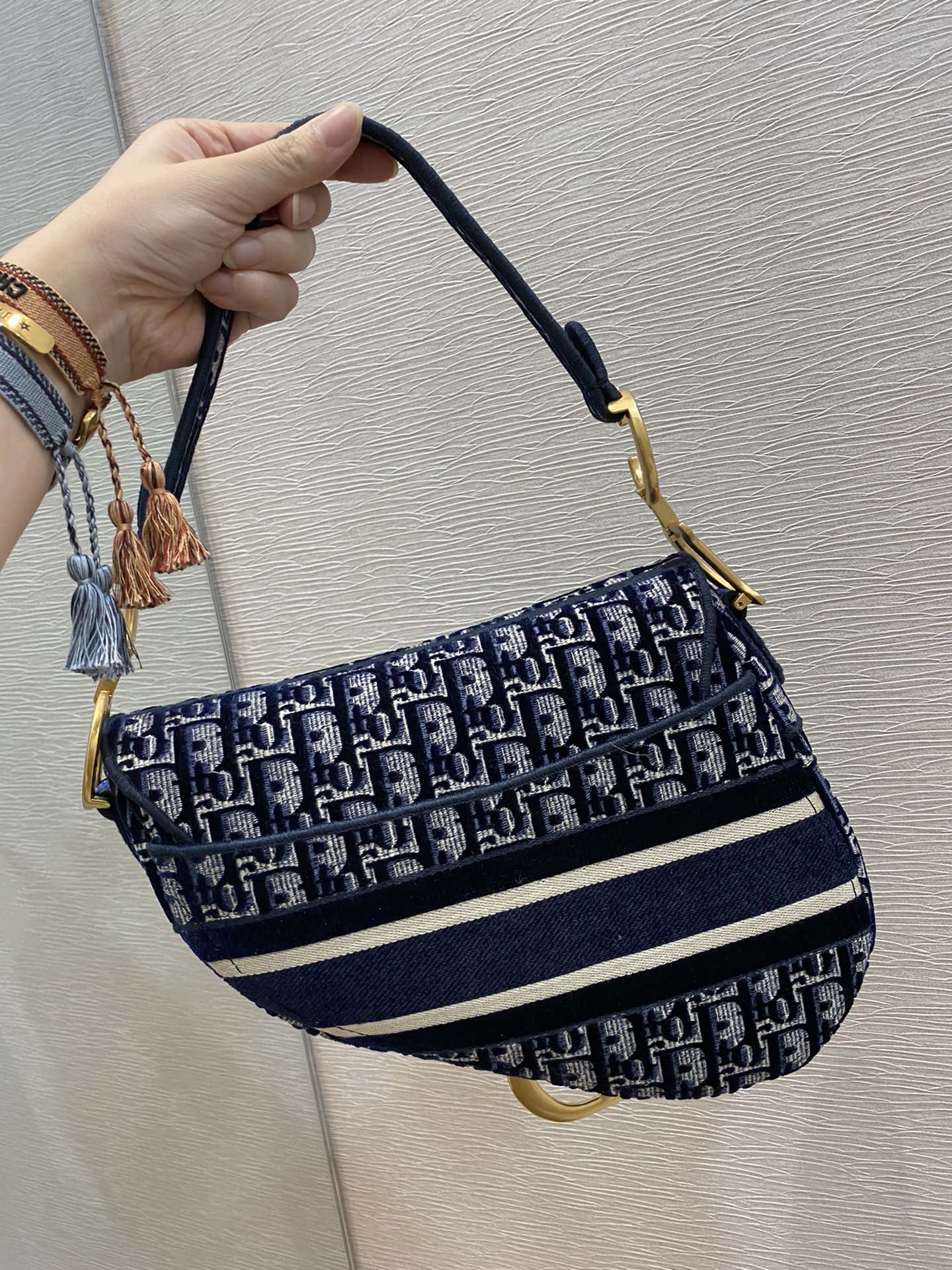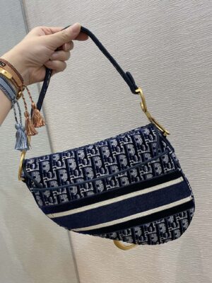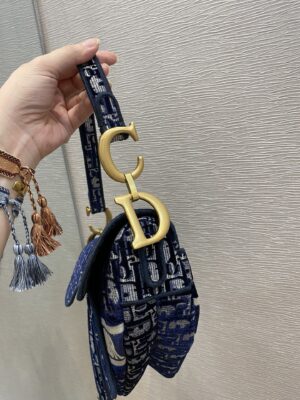 The iconic Saddle bag, crafted in white , is reimagined by Maria Grazia Chiuri. The legendary design is embellished with a Dior Oblique perforations motif and features a Saddle flap with a magnetic ‘D’ stirrup clasp and an antique gold-finish metal ‘CD’ signature on either side of the strap. The bag has a wide embroidered strap, both adjustable and removable, and may be carried by hand, worn over the shoulder or crossbody.
