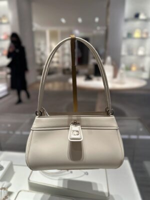 A pillar of the Spring-Summer 2023 fashion show, this season’s new Dior Key bag draws inspiration from House archives to create a style with retro charm. Offered in box , it is distinguished by a CD twist clasp inspired by an exclusive lock and revealing a compartment to accommodate all the essentials. Featuring thin handles, the refined small bag can be worn over the shoulder or carried by hand to accompany all of this season’s attire.
