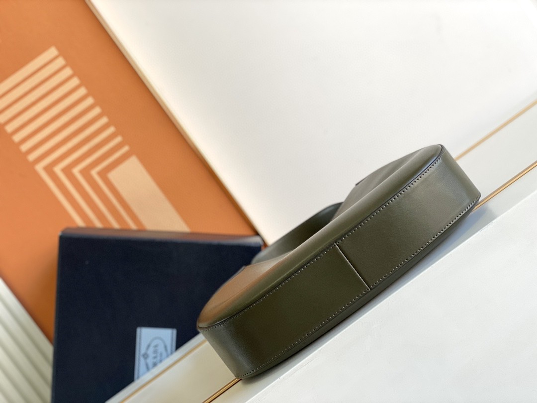 The Prada Cleo Brushed Shoulder Bag with sophisticated allure reinterprets an iconic design of the brand from the nineties. The sleek, curved lines emphasized by the particular sloped construction of the bottom and sides give this hobo bag a soft, light look. A distinctive element of Prada collections, is a modern and versatile material that lends itself to always new combinations and contrasts. The triangle logo decorates the silhouette.