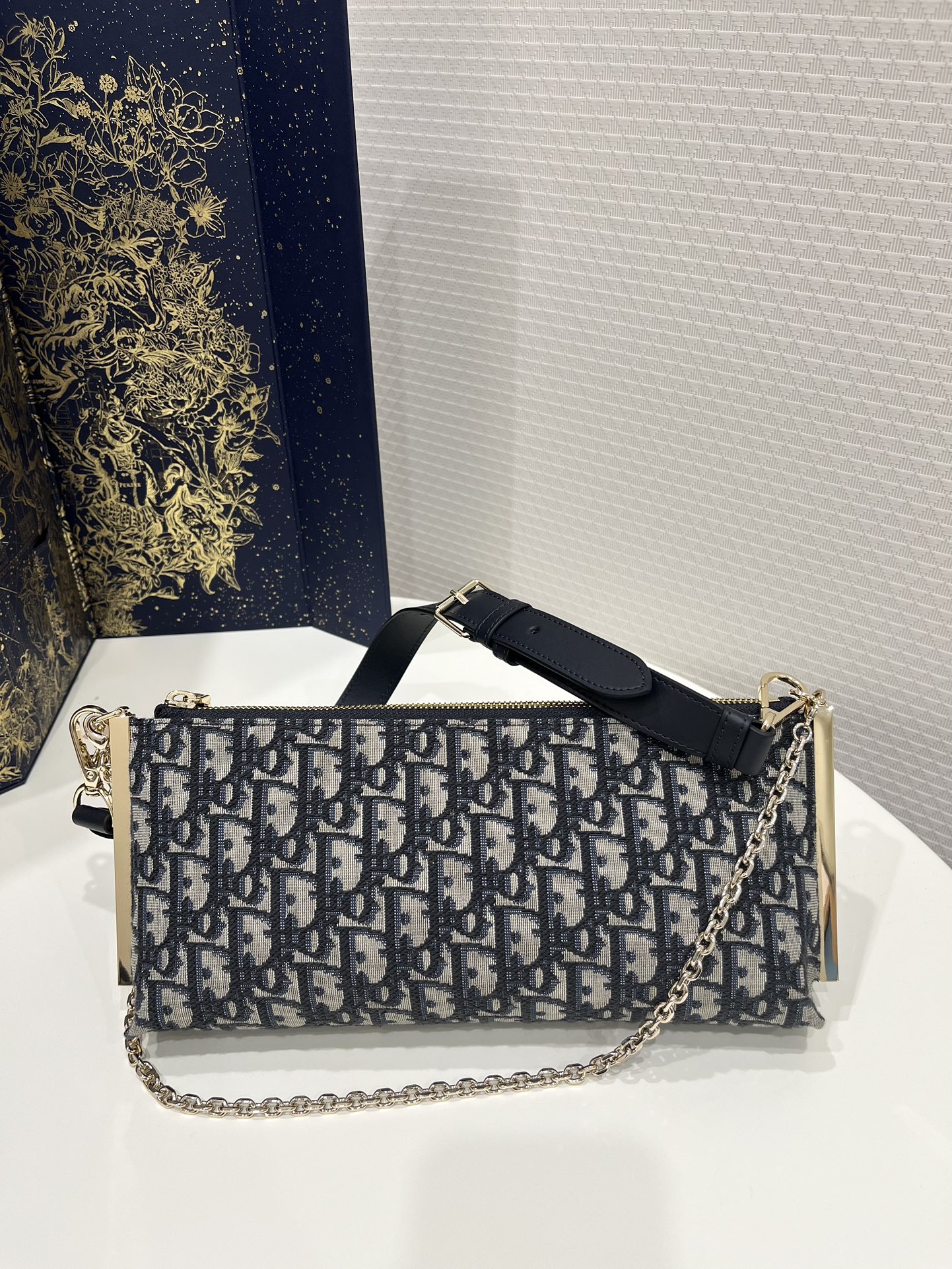 New for the Summer 2023 season, the Dior Club Bag stands out with a functional design that combines the House’s codes of modernity and refinement. Its supple form, crafted in blue Dior Oblique jacquard, is enhanced by D.I.O.R. charms and gold-finish metal details. Featuring an adjustable and removable leather shoulder strap, as well as a removable chain strap, the versatile bag is ideal for daytime and evening wear alike.