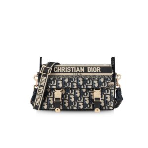 Maria Grazia Chiuri has updated the classic messenger bag by adding signature Dior details for a relaxed and modern look. Fully embroidered with the blue Dior Oblique motif, the bag is enhanced by a Christian Dior Paris signature flap, as well as sportswear-inspired CD buckles. Equipped with an adjustable and removable shoulder strap, the small, compact messenger bag can be worn over the shoulder or crossbody, and will make an ideal urban companion.