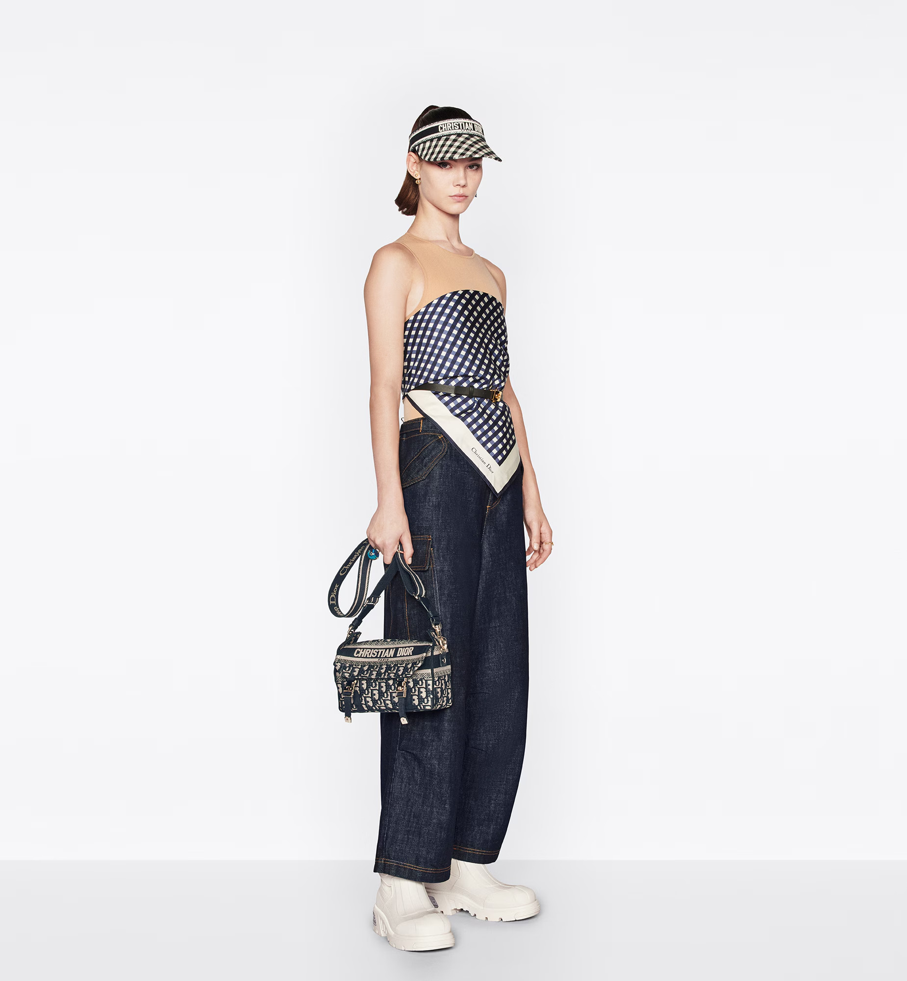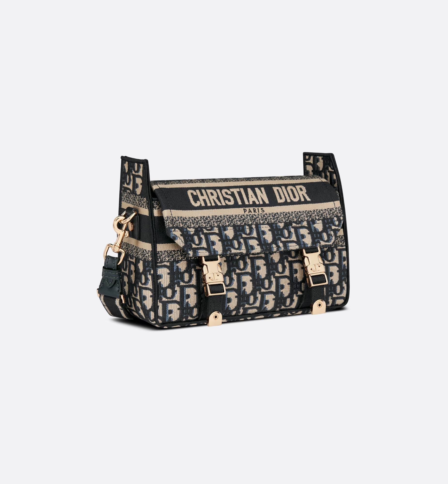 Maria Grazia Chiuri has updated the classic messenger bag by adding signature Dior details for a relaxed and modern look. Fully embroidered with the blue Dior Oblique motif, the bag is enhanced by a Christian Dior Paris signature flap, as well as sportswear-inspired CD buckles. Equipped with an adjustable and removable shoulder strap, the small, compact messenger bag can be worn over the shoulder or crossbody, and will make an ideal urban companion.