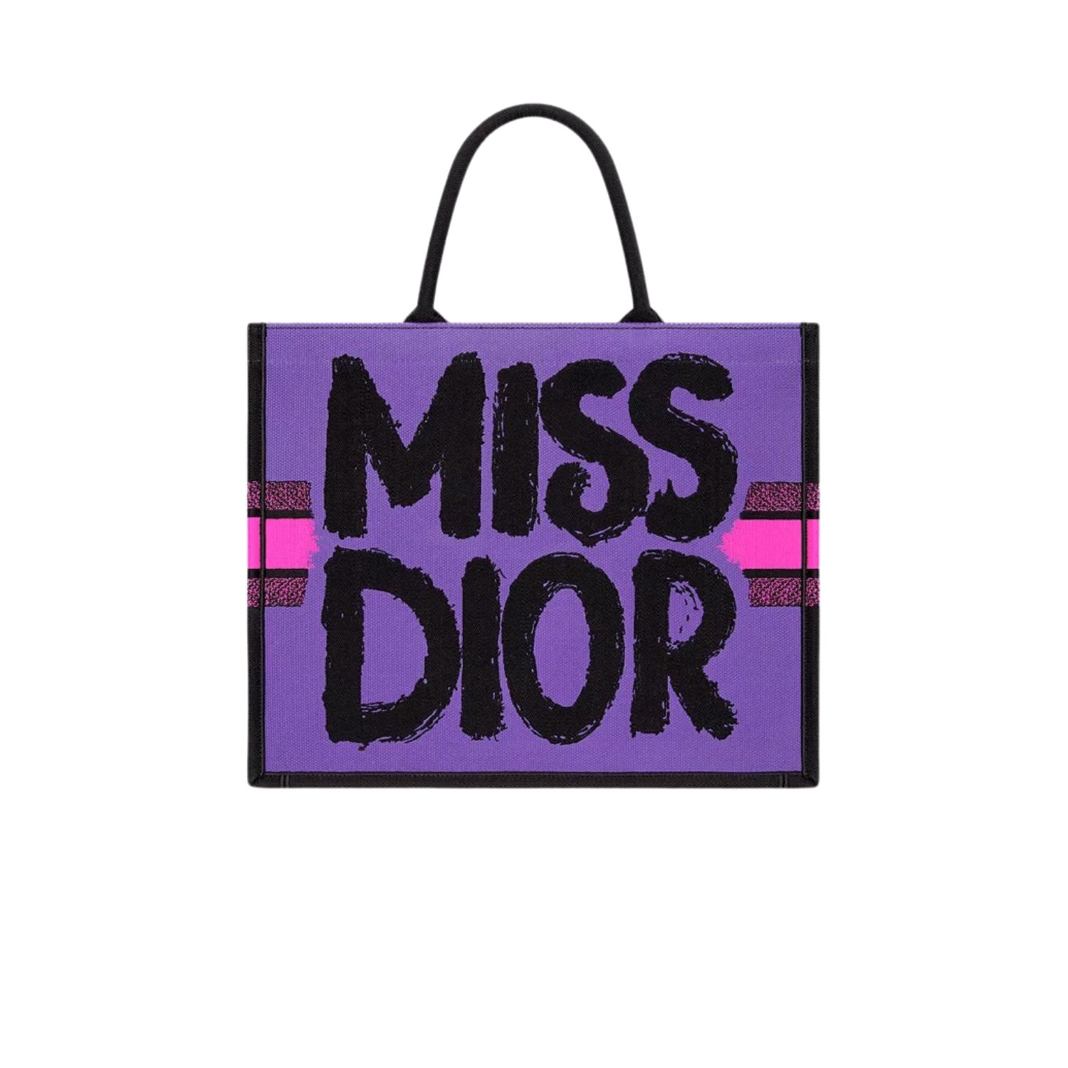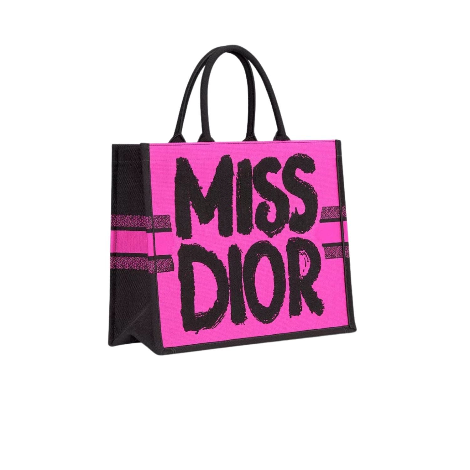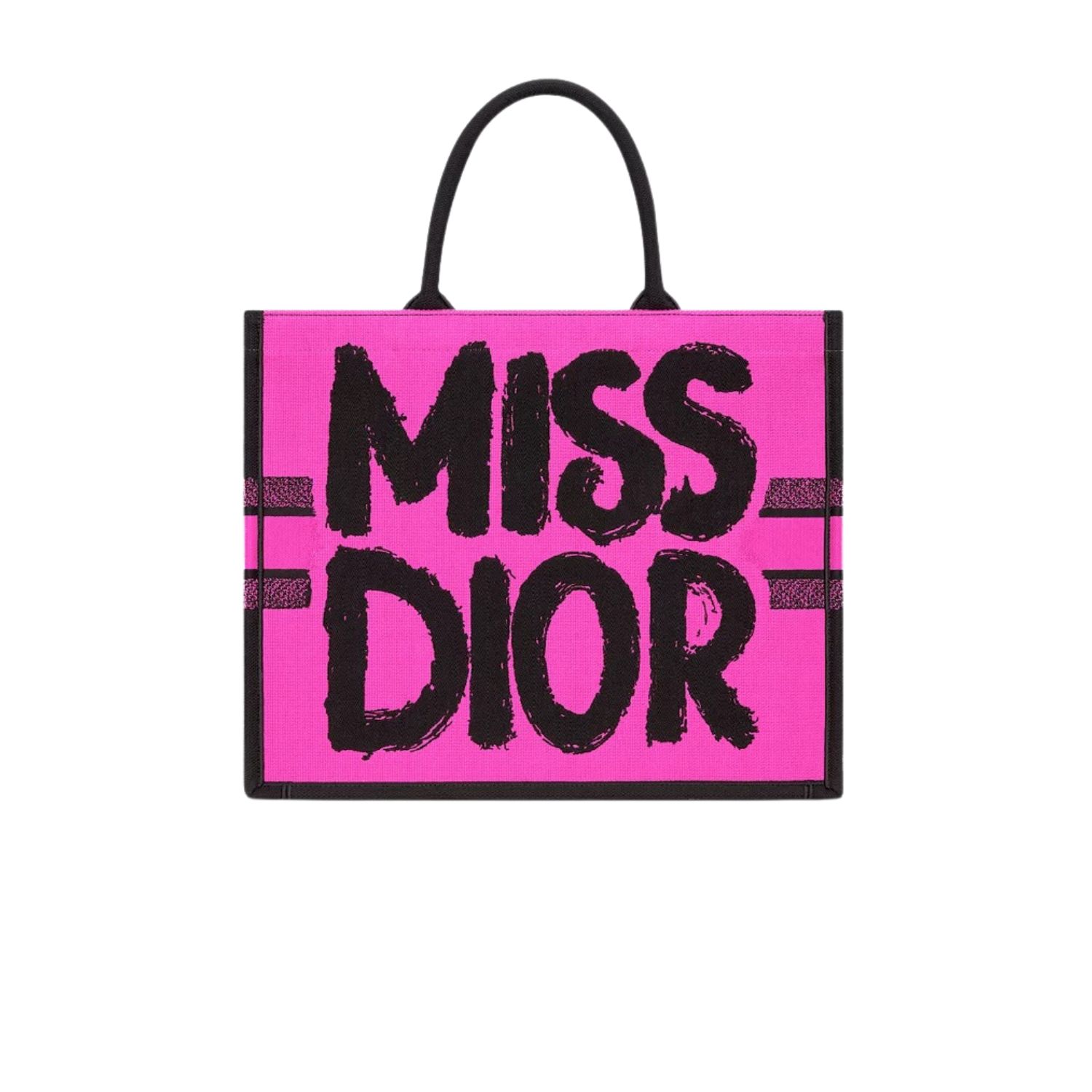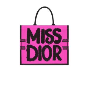 Introduced by Maria Grazia Chiuri, Creative Director of Christian Dior, the Dior Book Tote has become a staple of the Dior aesthetic. Designed to hold all the daily essentials, the black style is fully embroidered with the collection’s hallmark fuchsia Miss Dior Allover motif, inspired by the Marc Bohan for Dior archives in a modern take on the 1960s.