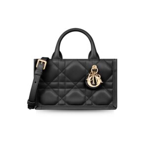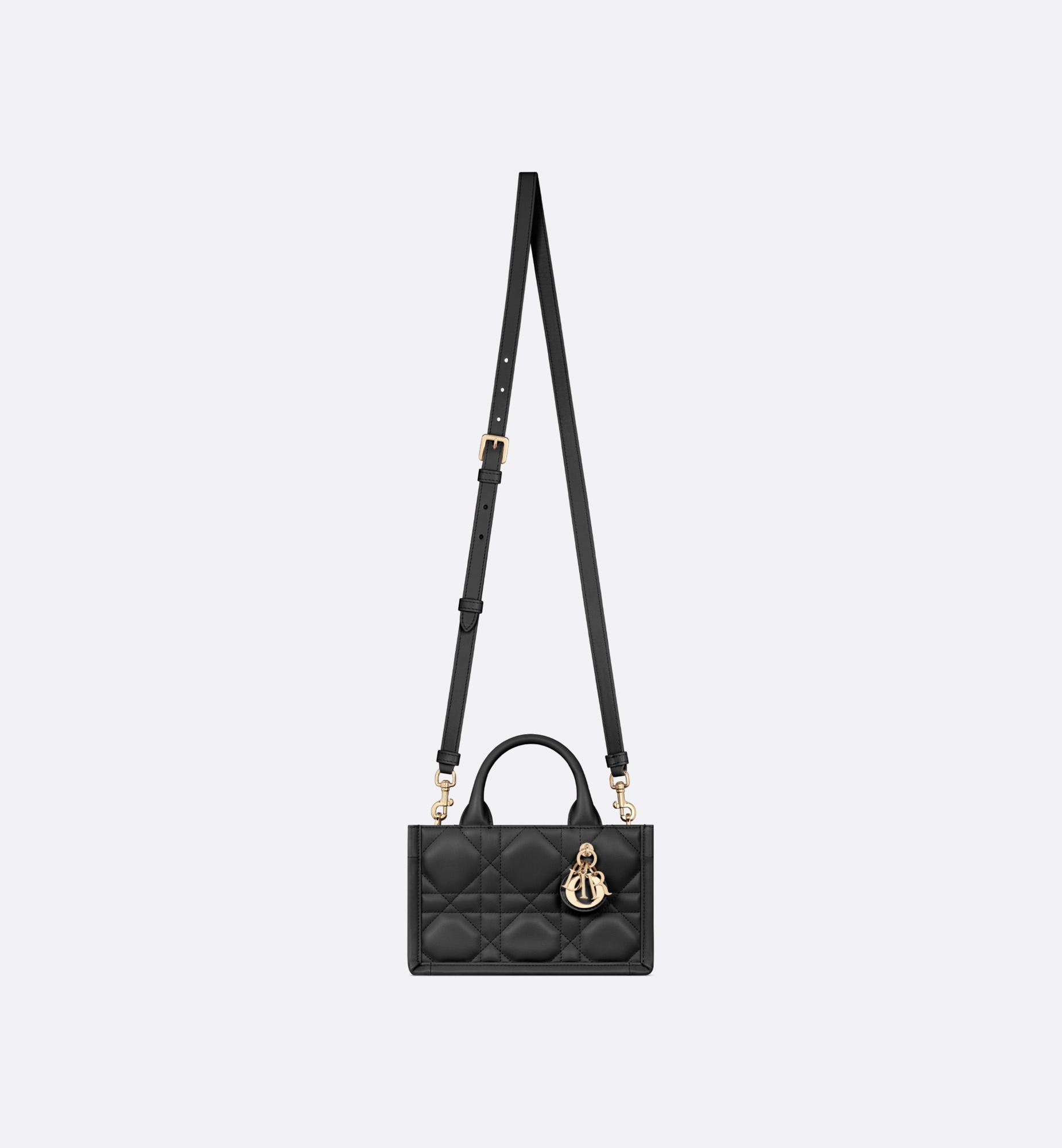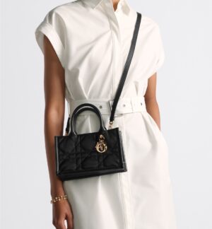 • The Dior Book Tote is a House classic and original design by Maria Grazia Chiuri, Creative Director of Christian Dior. Constructed in trench beige calfskin, it is embellished with hallmark Macrocannage topstitching and accented by pale gold-finish metal D.I.O.R. charms adorning one of the top handles. Exemplifying House savoir-faire, the miniature style features an adjustable and removable strap that allows it to be carried by hand, worn over the shoulder or crossbody.