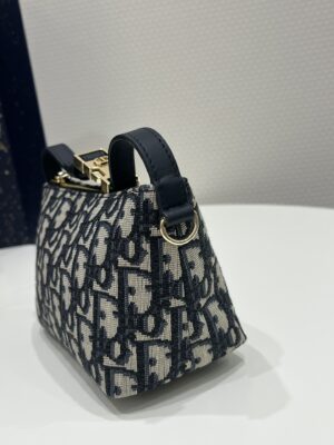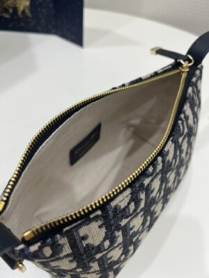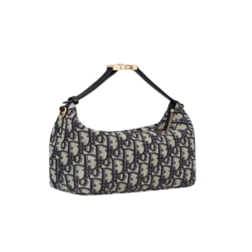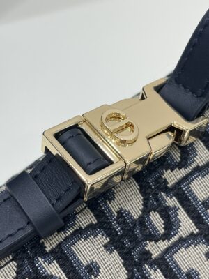 The Diortravel Nomad pouch is a modern hybrid design. Crafted in blue Dior Oblique jacquard, it presents a spacious and flexible form that will accommodate all the essentials. The medium style can be carried by hand or worn over the shoulder thanks to the top handle, complete with a military-inspired CD buckle, while one of the House’s embroidered shoulder straps can be attached to the side rings.
