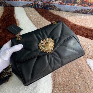 Iconic and feminine, the new large Devotion shoulder bag merges elegance and functionality. Spacious and light, it is made entirely from soft quilted nappa and features an exclusive bejeweled heart fastening and a shoulder strap that has been inspired by the techniques of high quality jewelers:
