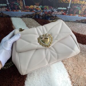 Iconic and feminine, the new large Devotion shoulder bag merges elegance and functionality. Spacious and light, it is made entirely from soft quilted nappa and features an exclusive bejeweled heart fastening and a shoulder strap that has been inspired by the techniques of high quality jewelers: