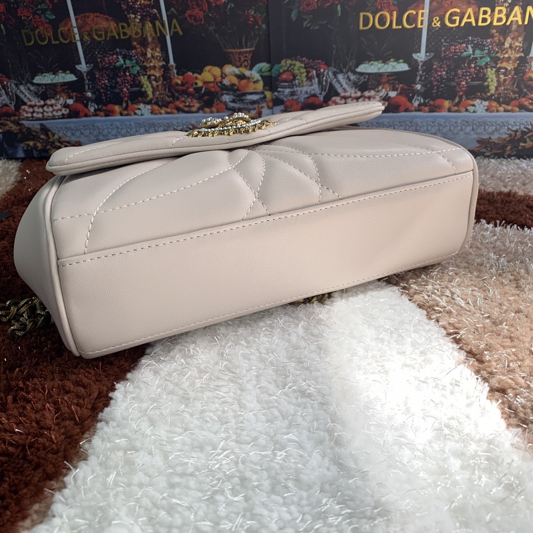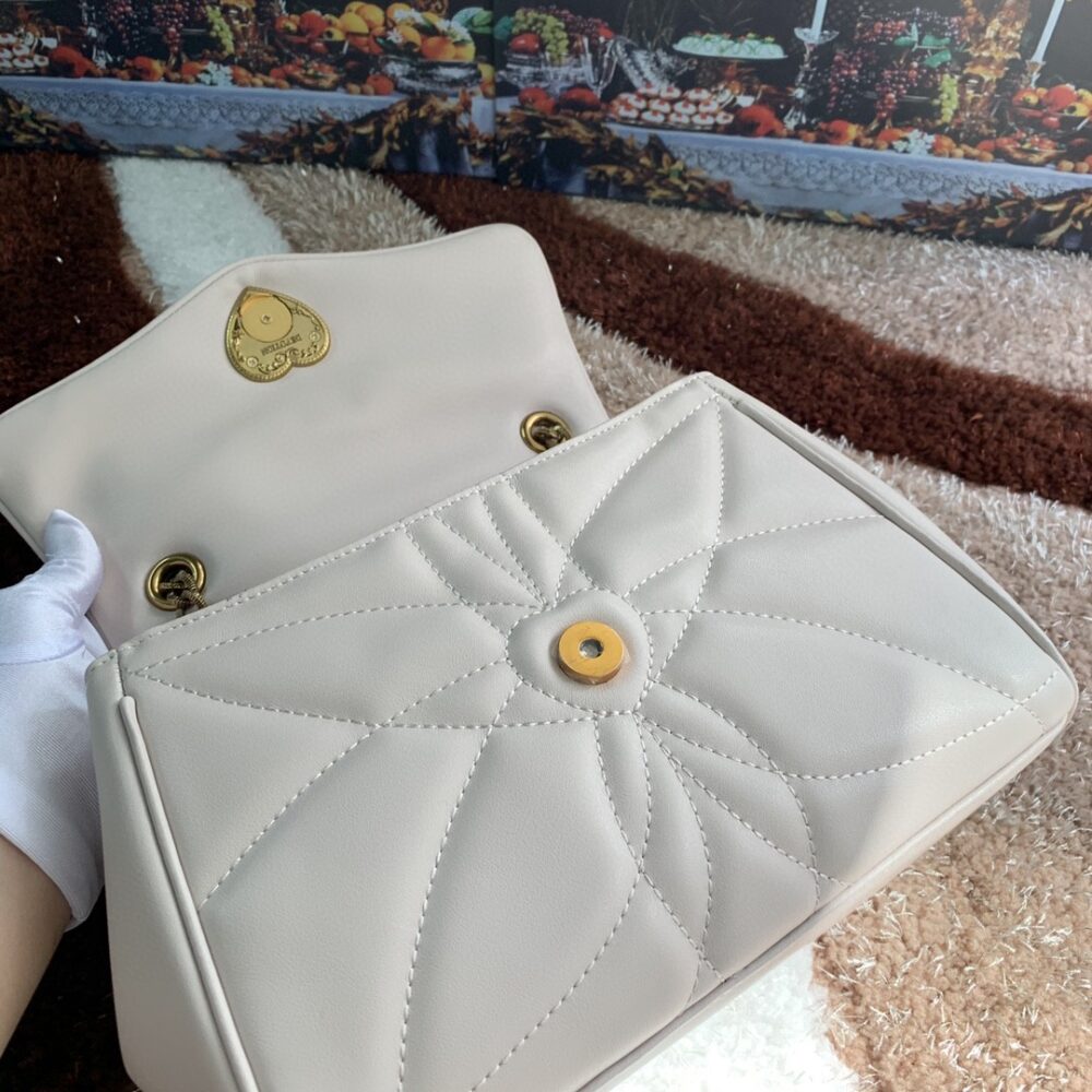 Iconic and feminine, the new large Devotion shoulder bag merges elegance and functionality. Spacious and light, it is made entirely from soft quilted nappa and features an exclusive bejeweled heart fastening and a shoulder strap that has been inspired by the techniques of high quality jewelers:
