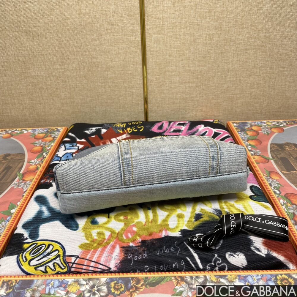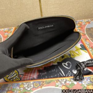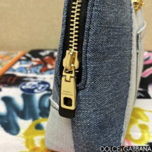 • This new make-up bag in patchwork denim is perfect for holding your everyday essentials. Place it inside your bags or carry it separately. It stands out with its baroque DG logo in vintage gold metallic ABS