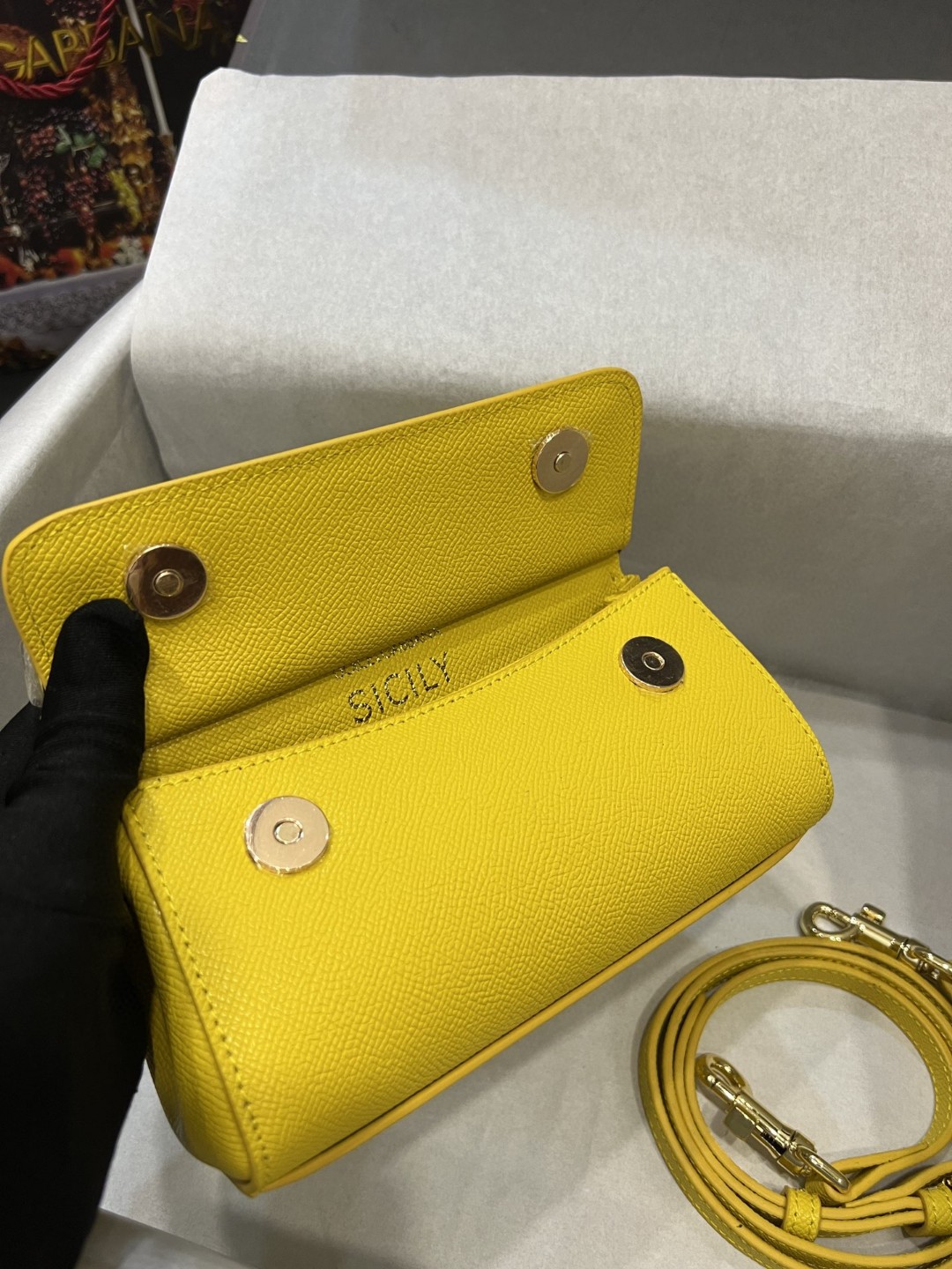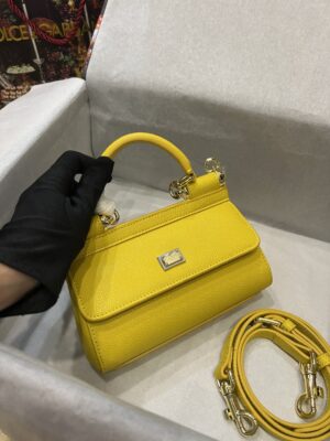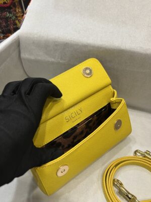 Dolce & Gabbana Small Sicily Bag In Dauphine Yellow For Women 7.5in/19cm DG