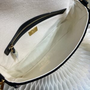 • Iconic medium Baguette bag, made of white canvas with a black FF motif in a raised embroidery and a decorative FF clasp.