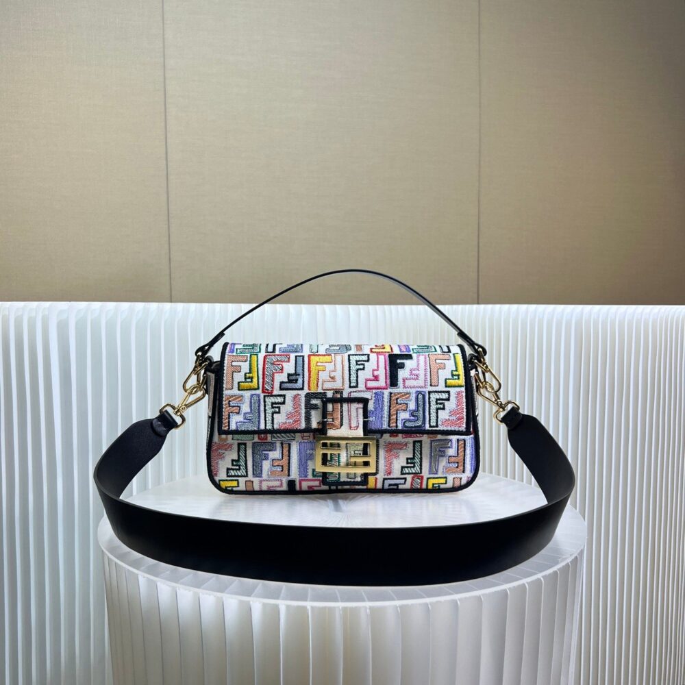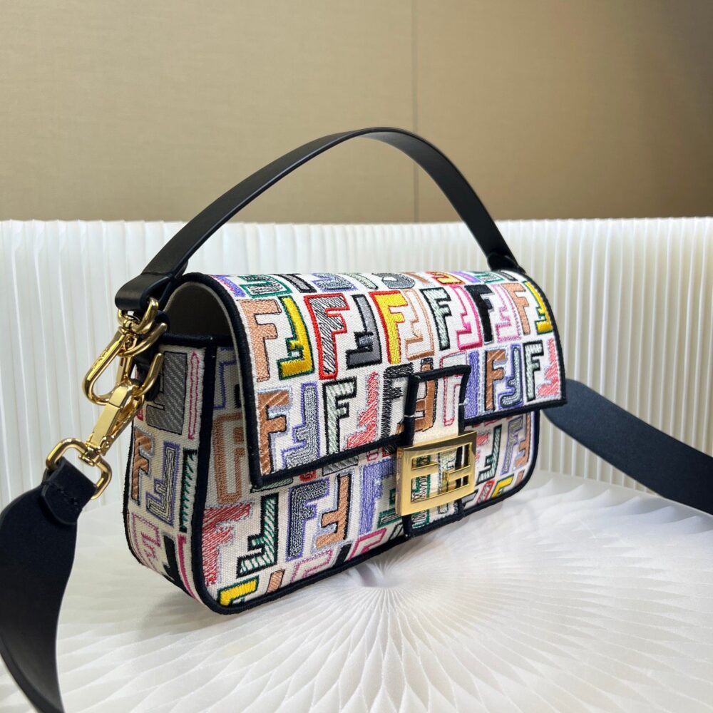 Fendi Canvas Bag With Ff Embroidery Multicolor For Women 18cm / 7.1in