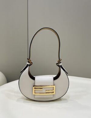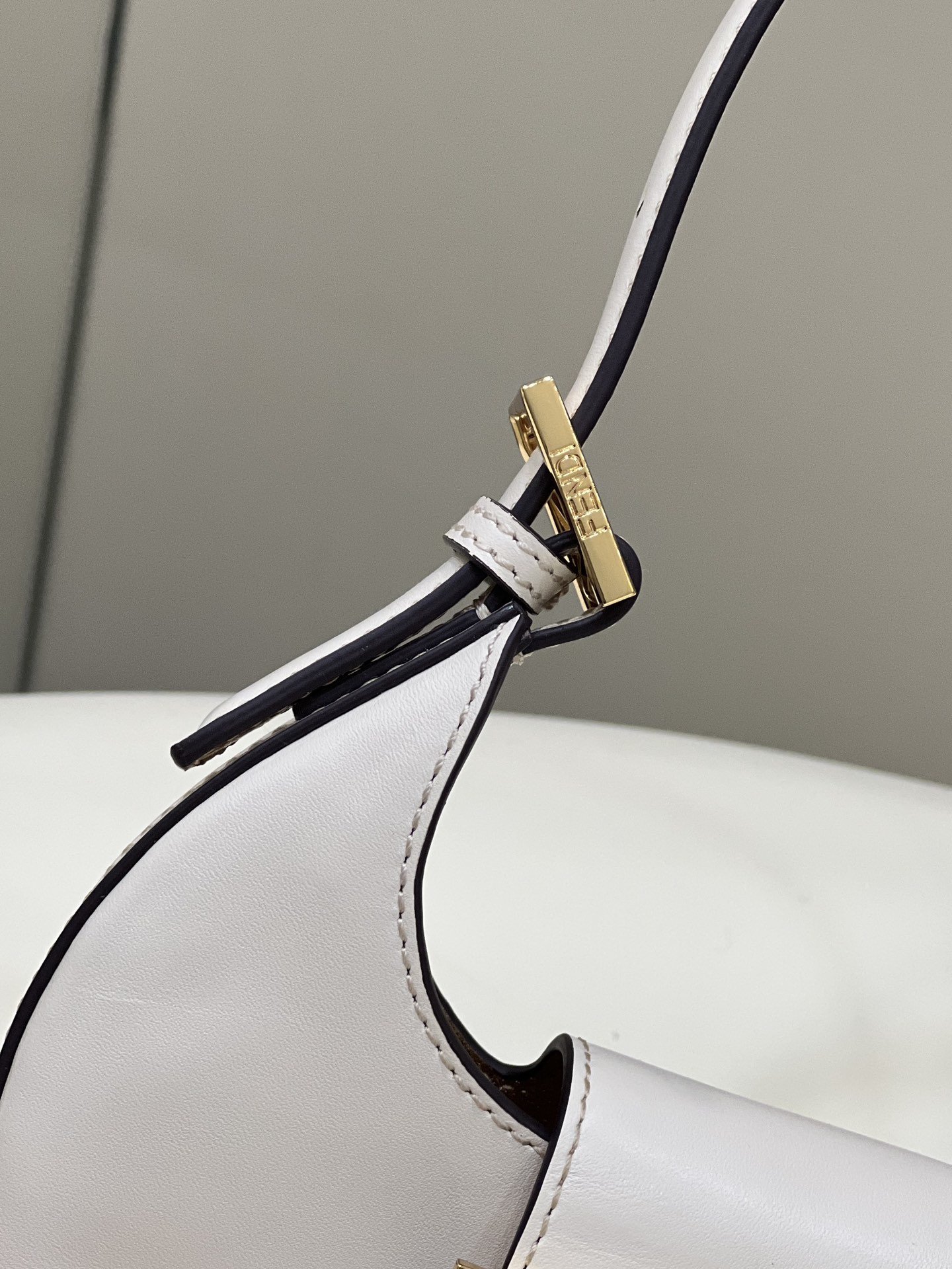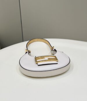 Fendi Cookie mini hobo bag made of pale white decorated with an FF clasp. The bag can be carried by hand thanks to the adjustable strap.