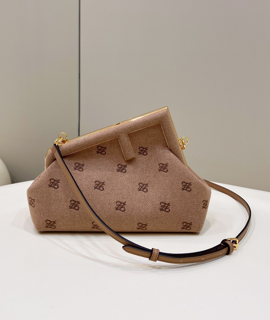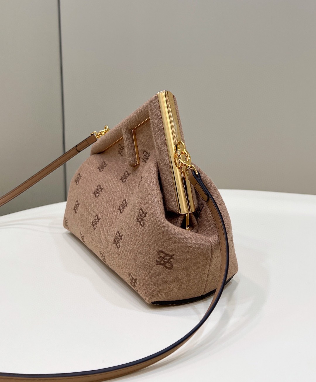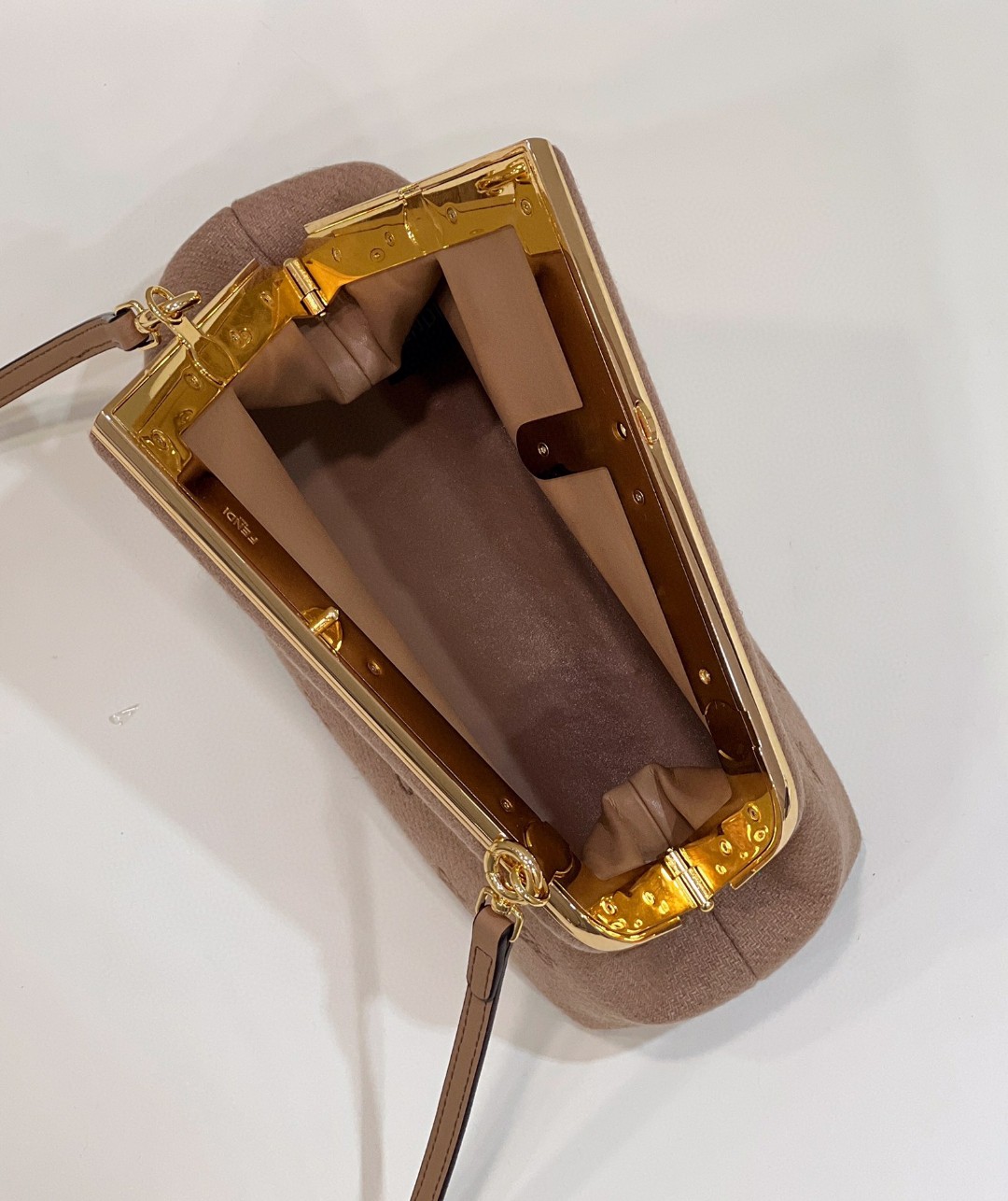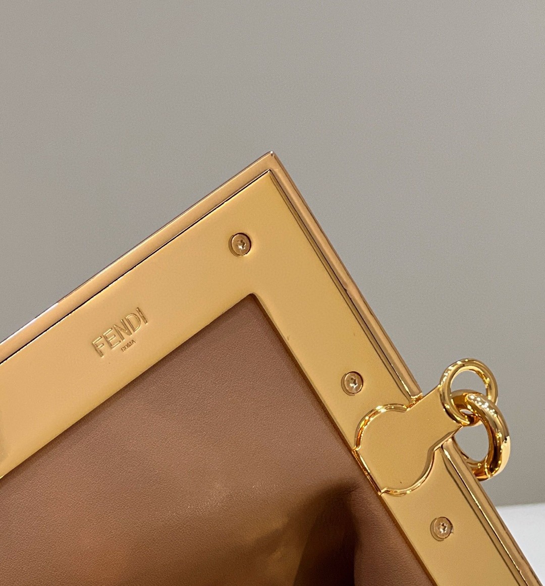 Featuring an interior compartment lined in fabric with the iconic FF motif, removable inner hooks and gold-finish metalware.