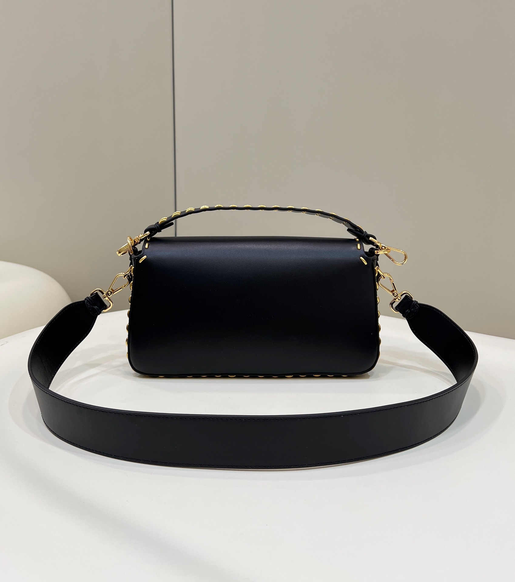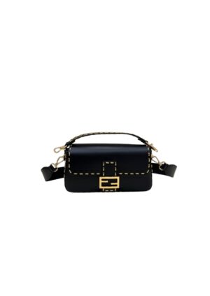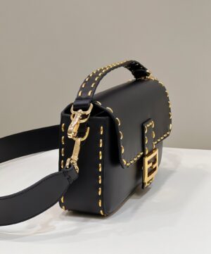 Iconic medium Baguette bag in parchment-coloured leather with Metal Stitch stitching. Decorated with an FF clasp.