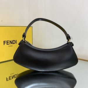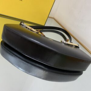 Pouch made of black leather with zipper closure, decorated with Fendi Roma lettering in gold-colored metal.