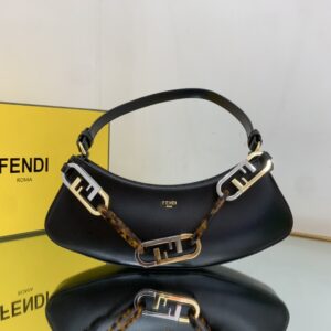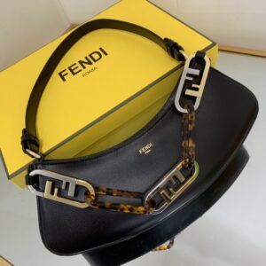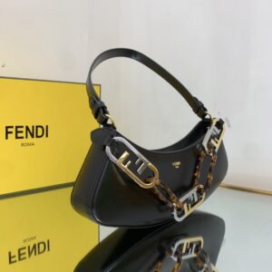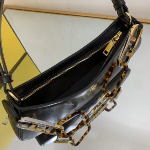 Can be carried by hand or under the arm thanks to the double handles: one removable leather handle and one chain handle with maxi O’Lock logo in metal and tortoiseshell-effect plexiglass that decorates the bag.