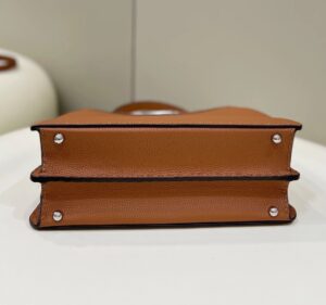 Medium Peekaboo ISeeU bag, made of bronze Cuoio Romano topstitched by hand. The interior is organised into two compartments divided by a stiff partition, the front features the iconic twist lock, and there is a zip fastening on the back. The removable interior pocket. Can be carried by hand or on the shoulder thanks to the handle and adjustable, detachable shoulder strap.