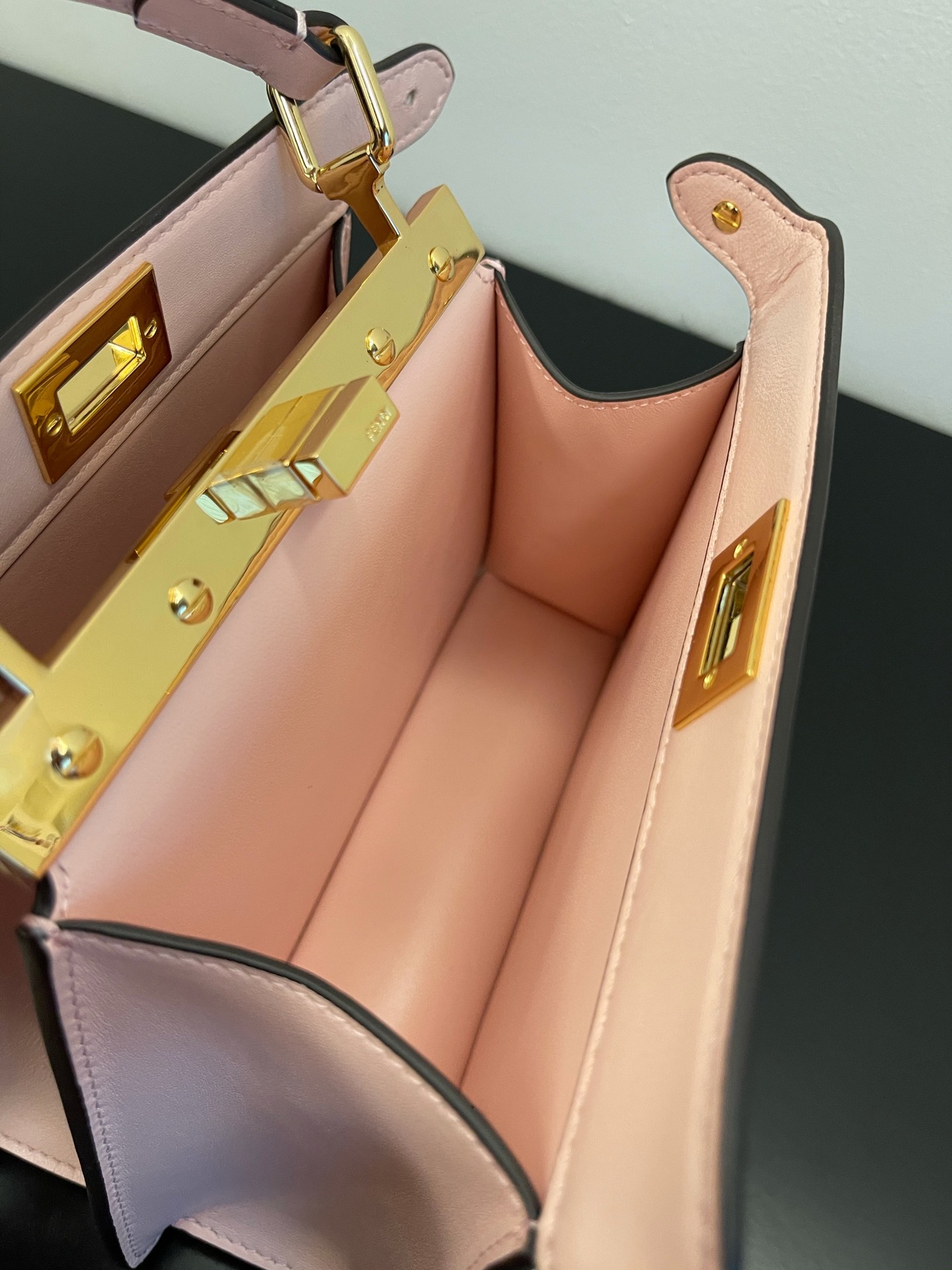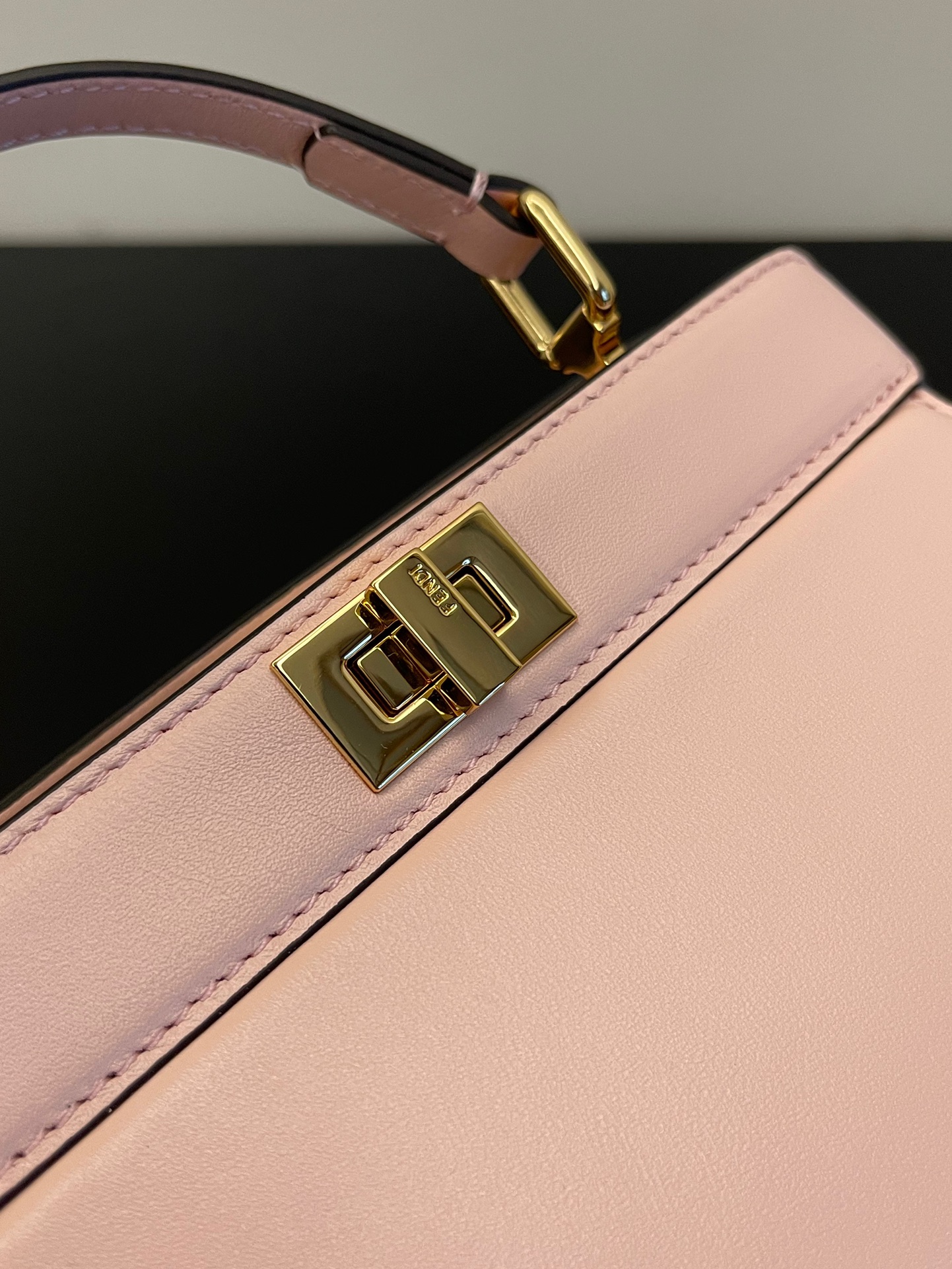 Iconic Peekaboo ISeeU bag in an ideal, compact size. Made from soft, padded, Beige nappa leather and embellished with the classic twist lock on both sides.