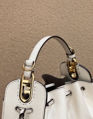 Mini-bag with drawstring closure made of white leather and tone on tone full grain leather.