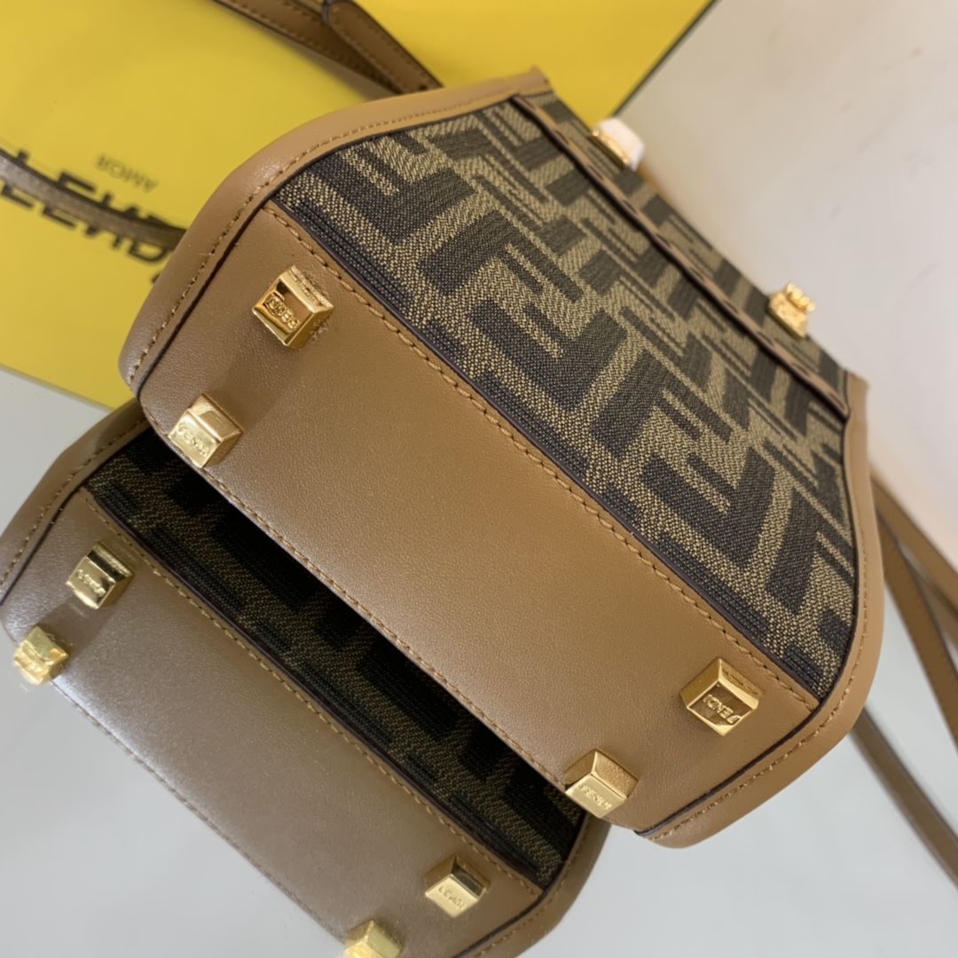 Fendi Sunshine Shopper Brown FF Fabric Mini Bag For Woman 13cm/5in