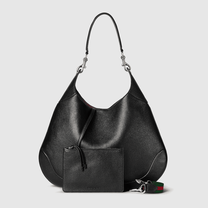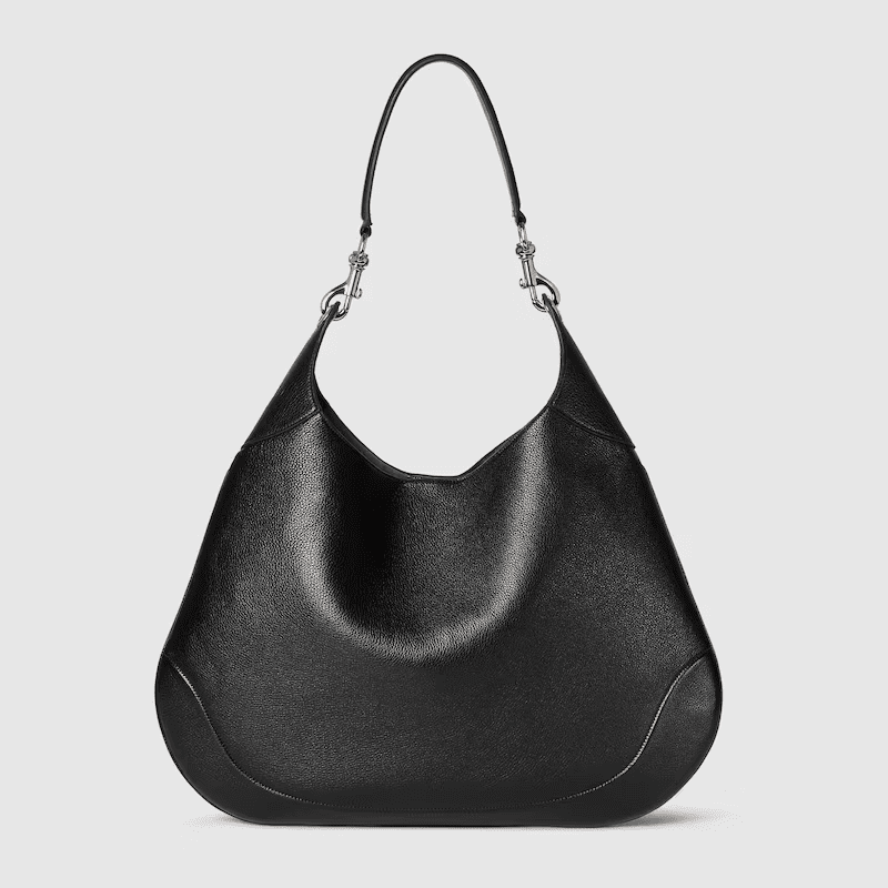 Introducing the Gucci B, which draws inspiration from a 1950s archival style. This medium shoulder bag, embodying the essence of its mid-20th century design origins, is crafted from soft grainy leather which drapes on the body.