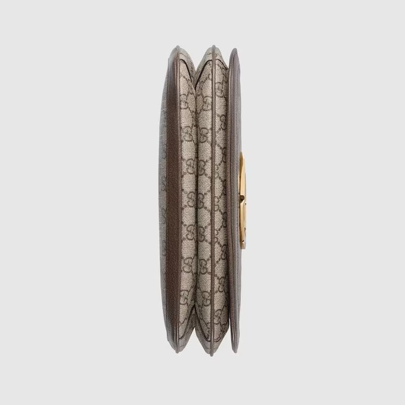 Coming from the House’s archives, a geometrically shaped version of the Interlocking G logo comes to the fore. The gold-toned hardware adds a defined vintage feel to the style, enriching the design with a timeless feel—mirroring the Hollywood glamour that shaped the fashion show. The GG Supreme canvas top handle bag is completed by two interchangeable straps.